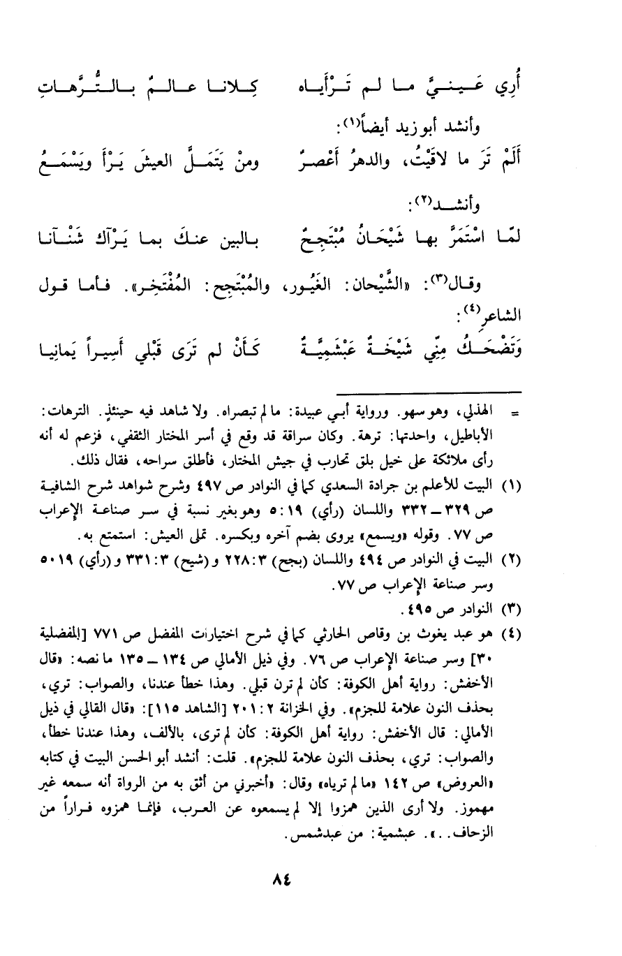 وقال: "الشيحان: الغيور، والمبتجح: المفتخر". فأما قول الشاعر: