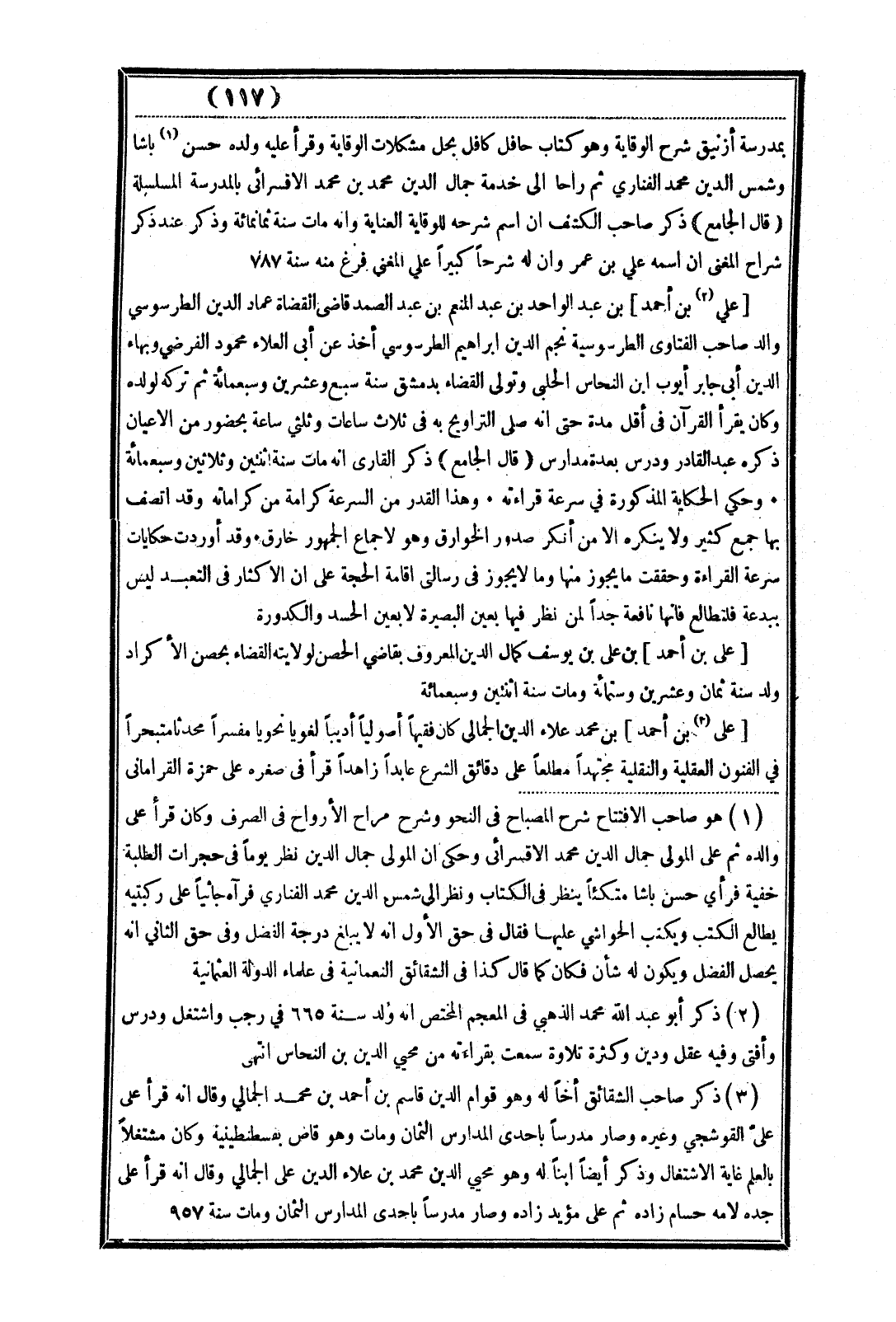 (قال الجامع) ذكر صاحب الكشاف أن اسم شرحه للوقاية العناية وأنه مات سنة ثمانمائة وذكر عند ذكر شراح المغني أن اسمه علي بن عمر وإن له شرحًا كبيرًا علي المغني فرغ منه سنة 787.