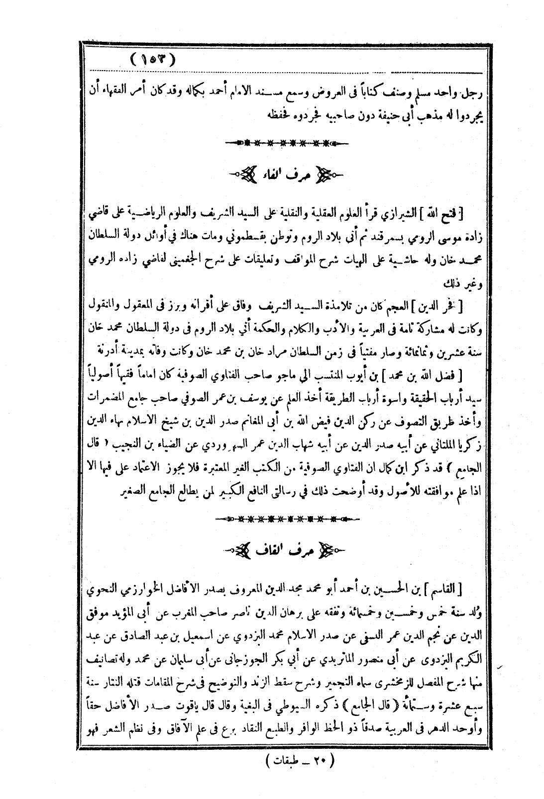 [فخر الدين] العجم كان من تلامذة السيد الشريف وفاق على أقرانه وبرز في المعقول والمنقول وكانت له مشاركة تامة في العربية والأدب والكلام والحكمة أتي بلاد الروم في دولة السلطان محمد خان سنة عشرين وثمانمائة وصار مفتياً في زمن السلطان مراد خان بن محمد خان وكانت وفاته بمدينة أدرنة.