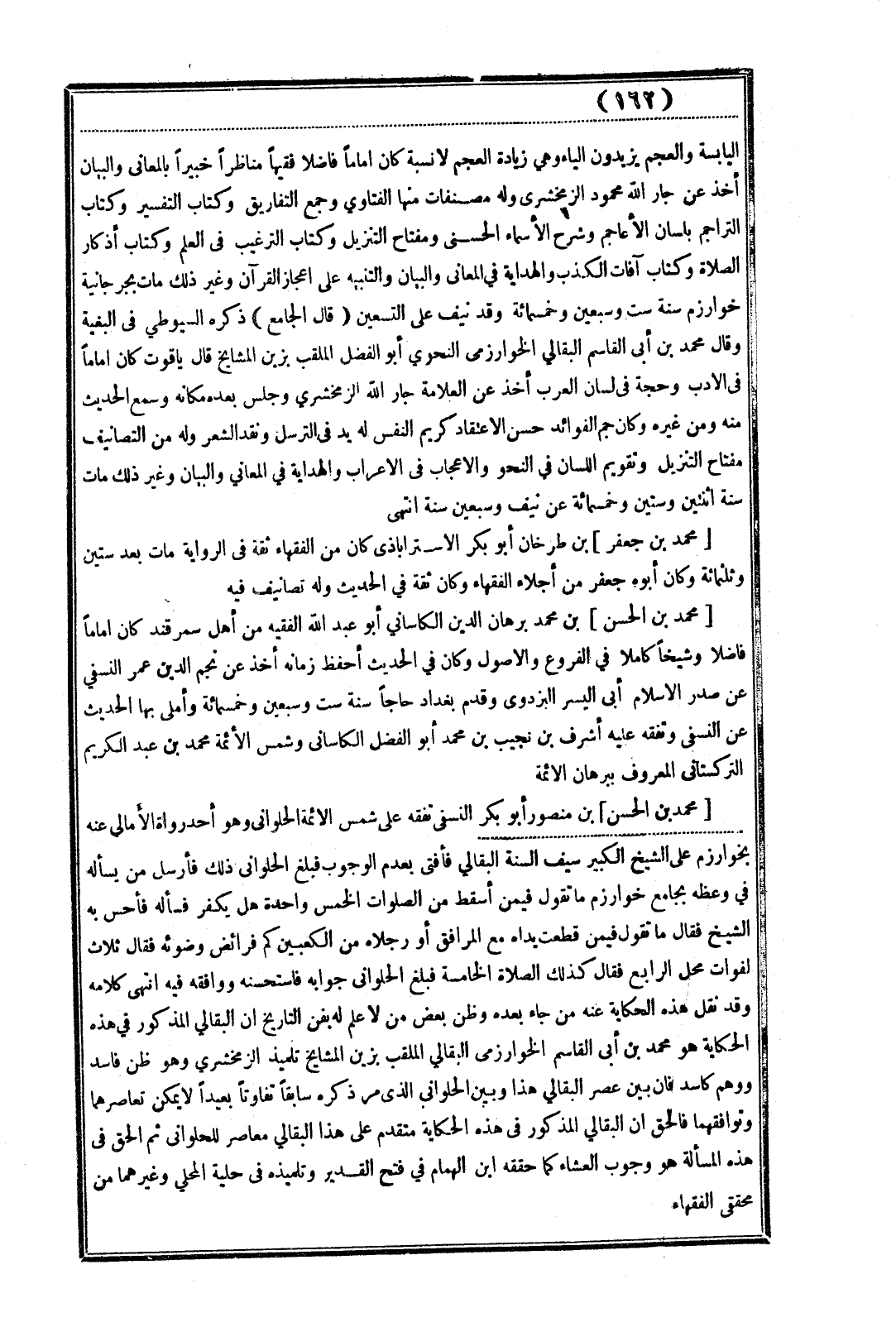 [محمد بن الحسن] بن منصور أبو بكر النسفي تفقه على شمس الأئمة الحلوانى وهو أحد رواة الأمالي عنه