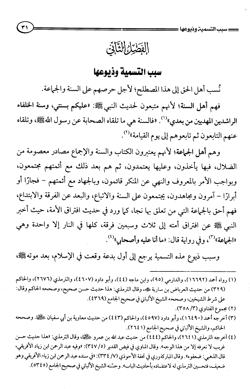 وقال سفيان الثوري رحمه الله: "إذا بلغك عن رجل بالمشرق صاحب سنة، وآخر بالمغرب، فابعث إليهما بالسلام وادع لهما، ما أقل أهل السنة والجماعة"5.