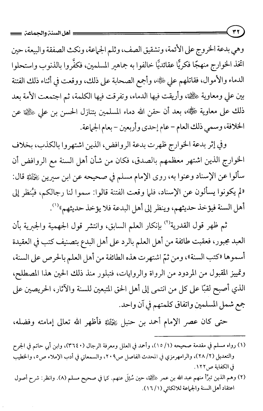 وسبق قول ابن حزم رحمه الله: "أهل السنة هم أهل الحق، ومن عداهم فأهل البدعة، فإنهم -أي أهل السنة- الصحابة رضي الله عنهم، ومن سلك منهجهم من خيار التابعين، ثم أصحاب الحديث، ومن اتبعهم من الفقهاء، جيلا فجيلا إلى يومنا هذا، ومن اقتدى بهم من العوام في شرق الأرض وغربها، رحمة الله عليهم"3.