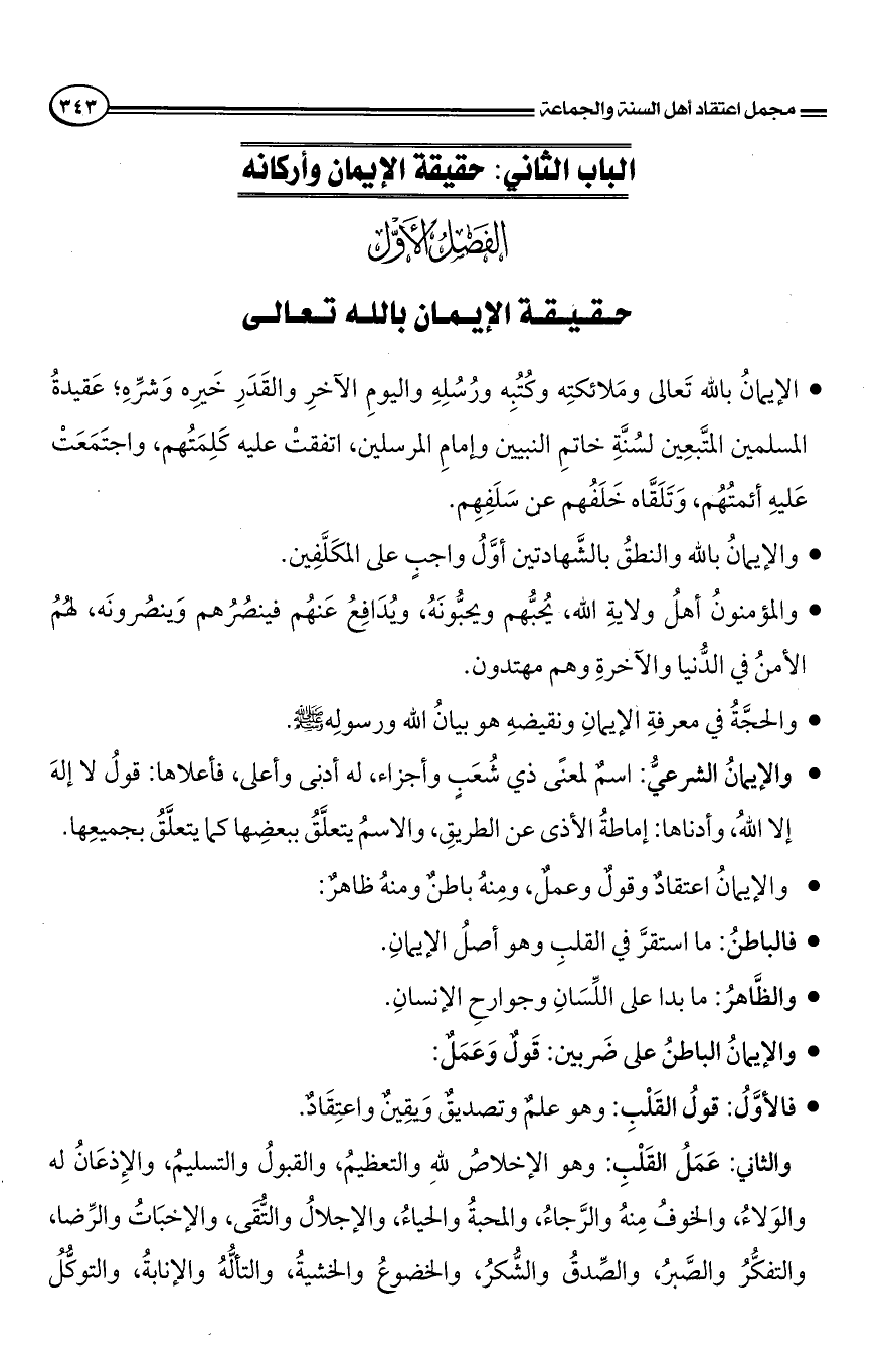 الباب الأول: الإيمان بالله وتوحيده.