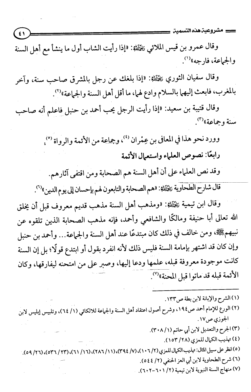 الحديث، فأطلق عليم أنهم "ممن" قال فيهم الرسول صلى الله عليه وسلم: "لا تزال طائفة من أمتي.." الحديث1.