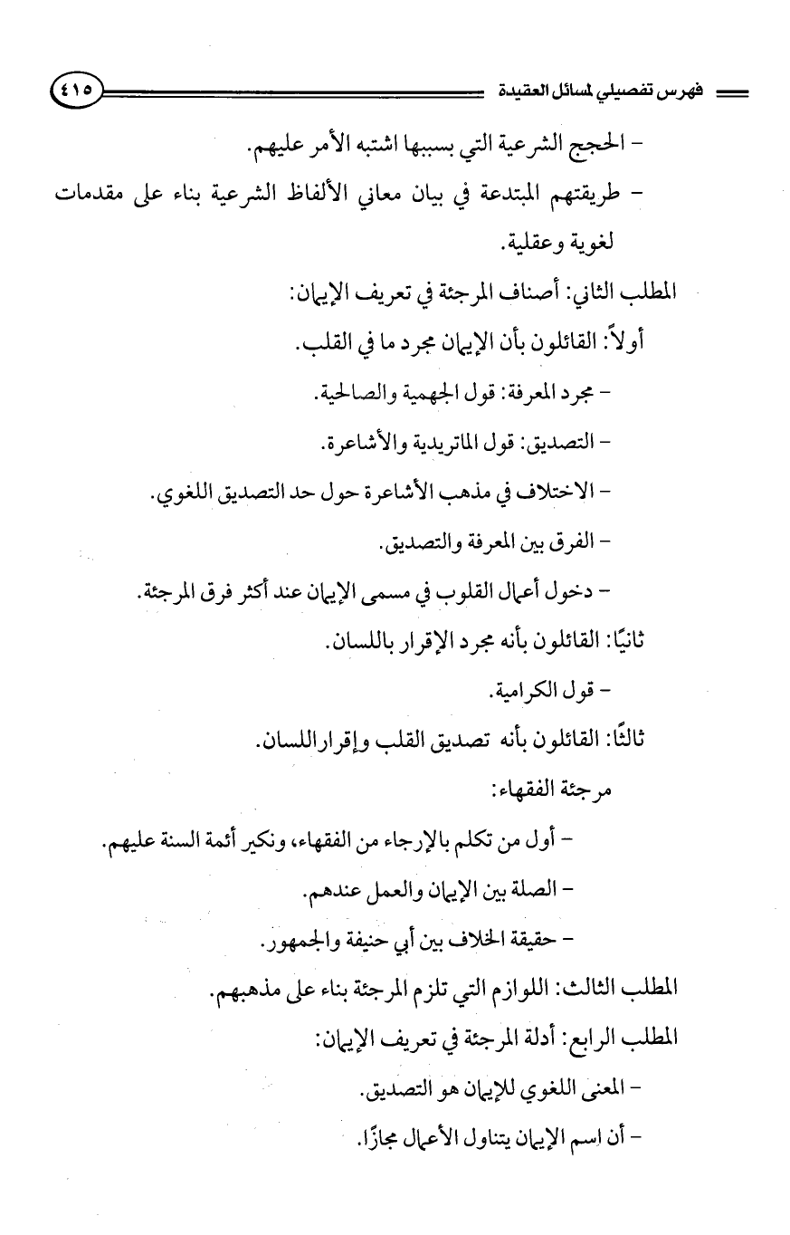 1- الإيمان وما يتعلق به من مباحث وآراء الناس فيه من مرجئة وجهمية.