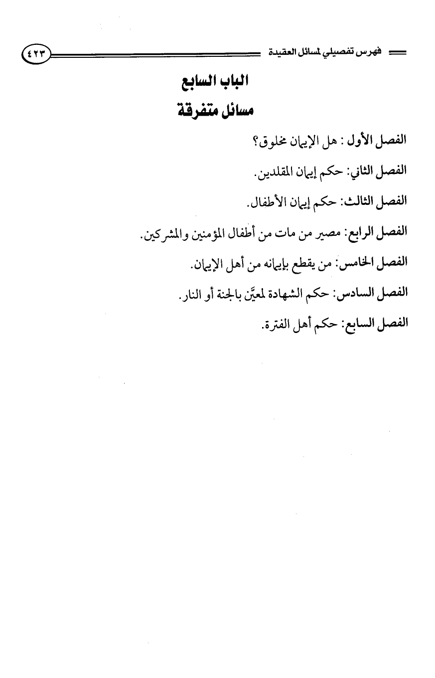 7- تحقيق القول في هل الإيمان مخلوق أو غير مخلوق؟ وما في ذلك من تفاصيل.