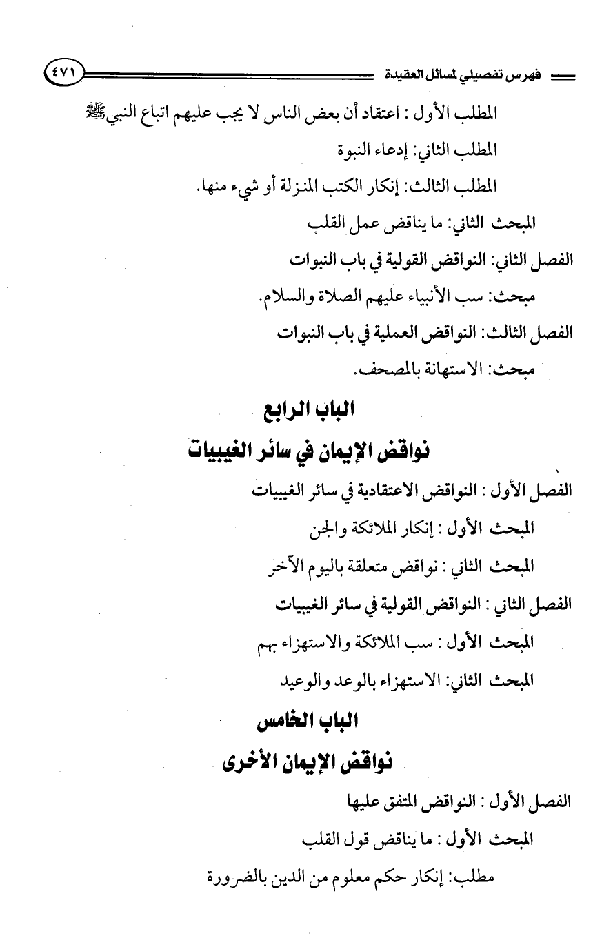 محتويات الكتاب: يشتمل على خمسة أبواب: الأول في القدر، والثاني في المشيئة، والرابع في الرد على من يكفر بالذنب، والخامس في الإيمان. وهناك رواية أخرى للكتاب تبدأ بالكلام عن أصل التوحيد، وما يصح الاعتقاد عليه، ثم الحديث عن الأسماء والصفات، والرد على المخالفين، ثم تتعرض لمسائل ميثاق الفطرة، وأفعال العباد، وآيات الأنبياء، وكرامات الأولياء، وسائر السمعيات، كذلك تناول الكلام عن الإيمان، وما يتصل به من مباحث ومسائل1.