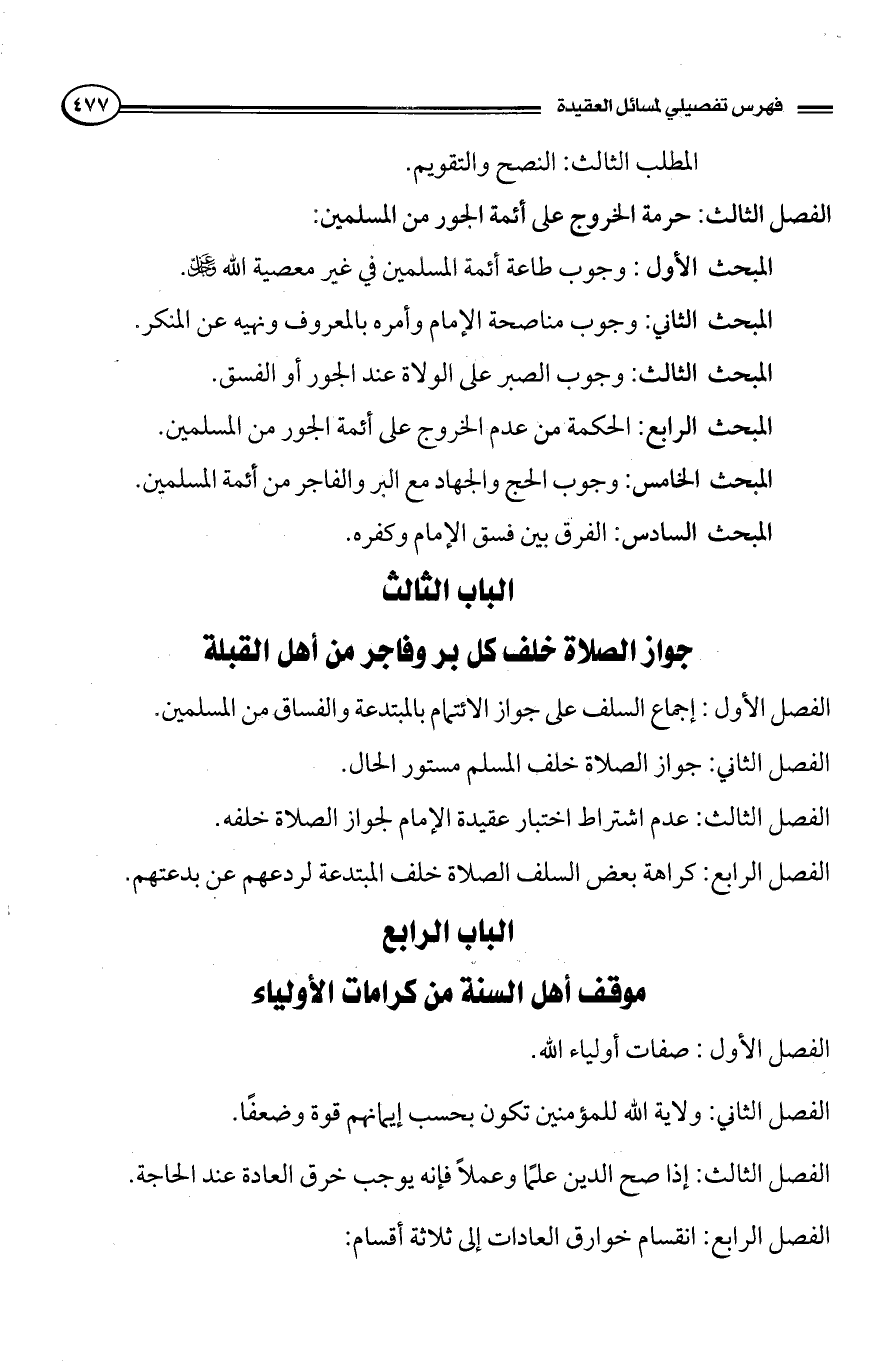 محتويات الكتاب: يقع الكتاب في خمسة أجزاء، ويتعرض لعدة موضوعات على مذهب أهل السنة، وهي: أحكام الإمارة والخلافة، ووجوب ملازمة الجماعة، وفضائل الصحابة، ويشرح أحكام الخوارج، وأحكام اللصوص، كما يتناول الرد على الروافض في عقيدتهم في الصحابة، والرد على القدرية في القدر، والمرجئة في الإيمان، والجهمية في خلق القرآن.