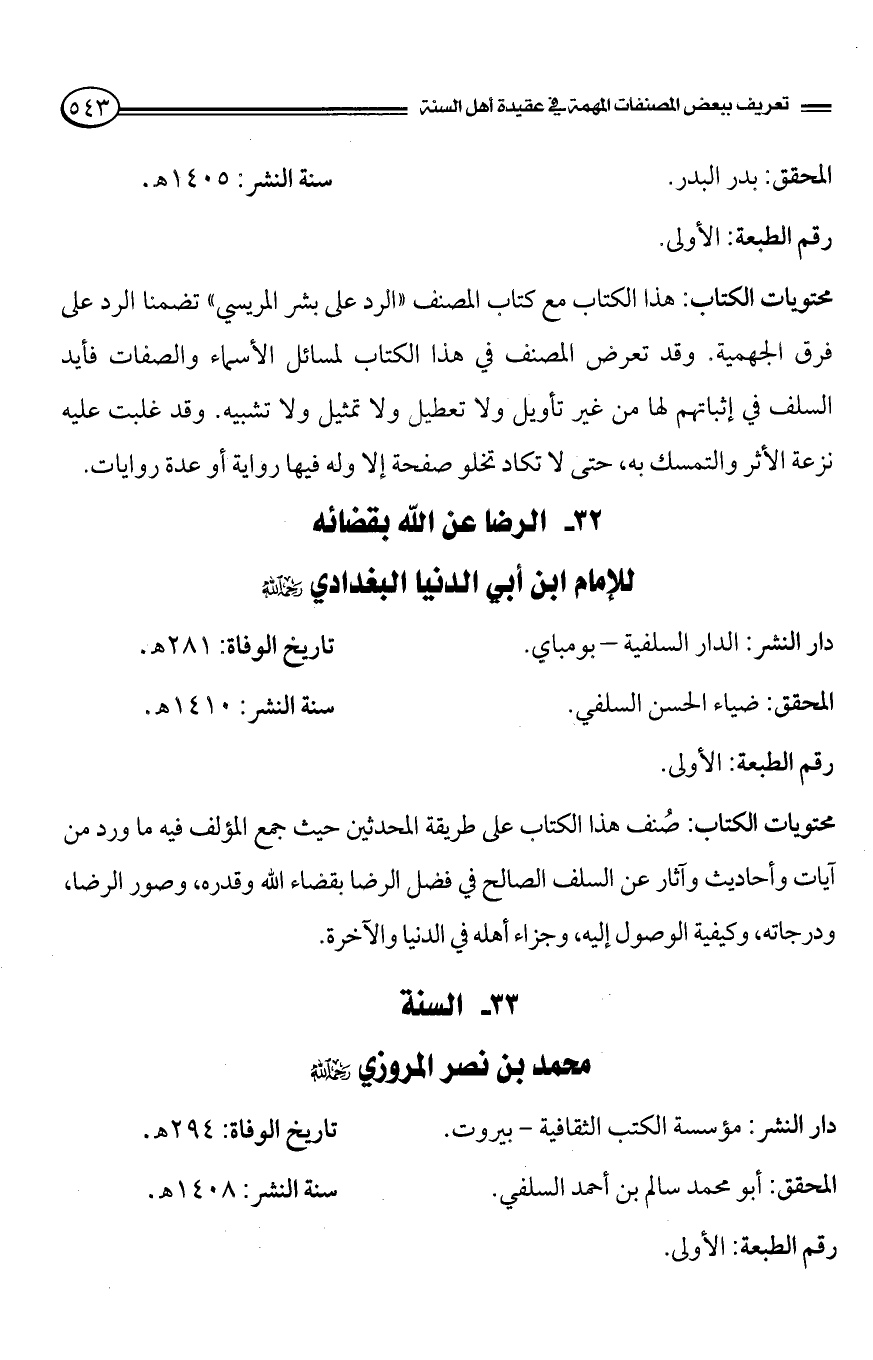 294- لمعة الاعتقاد الهادي إلى سبيل الرشاد، محمد عبد الله بن أحمد بن محمد بن قدامة المقدسي الجماعيلي، ثم الدمشقي الصالحي الحنبلي.