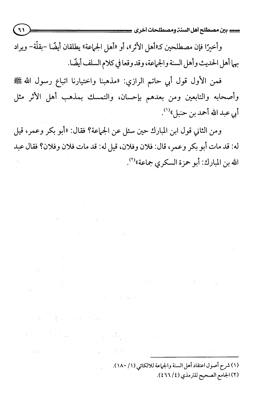 فأهل السنة مستمسكون بالجماعة، معرضون عن مواضع التفرق والاختلاف، ملتزمون بجمل الكتاب والسنة والإجماع، بعيدون عن مواطن المتشابهات التي تفرق الجمع وتشتت الشمل؛ لأن الجماعة عندهم هي مناط النجاة في الدنيا والآخرة.
