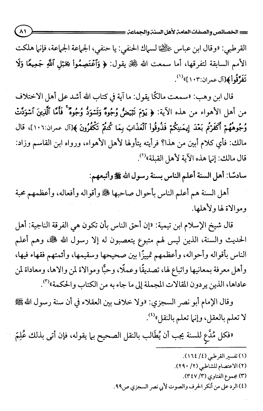 فاقتدى السلف الصالح رضي الله عنهم برسول الله صلى الله عليه وسلم، وتخلقوا بأخلاقه، وامتثلوا ما أمرهم به، وانتهوا عما نهاهم عنه، وكانوا كما قال الله عز وجل: {كُنْتُمْ خَيْرَ أُمَّةٍ أُخْرِجَتْ لِلنَّاسِ} [آل عمران: 110] .