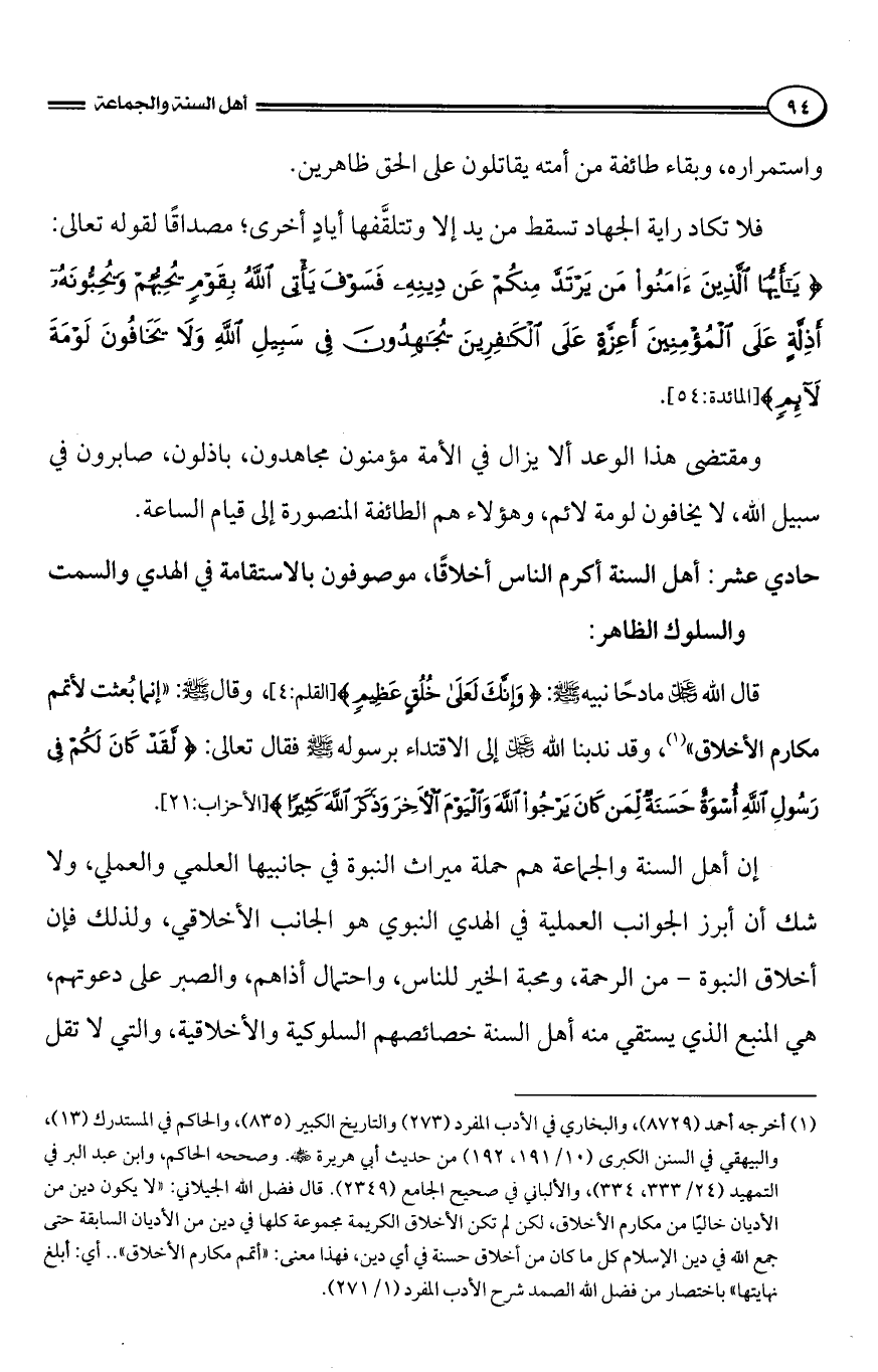 والجهاد ماض إلى يوم القيامة، وإنكار وجوبه إنكار لمعلوم من الدين بالضرورة، وادعاء نسخه بجهاد الكلمة بدعة في الدين وضلالة، ونقص في العقل وسفاهة.