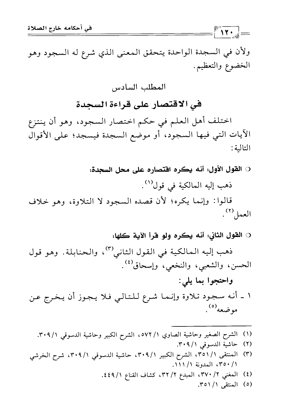 المطلب السادس: في الاقتصار على قراءة السجدة