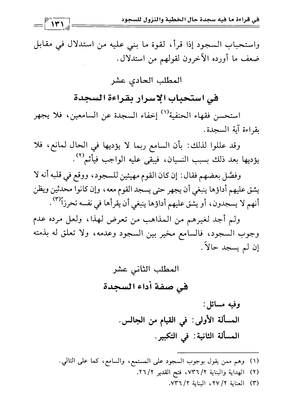 المطلب الحادي عشر: في استحباب الإسرار بقراءة السجدة