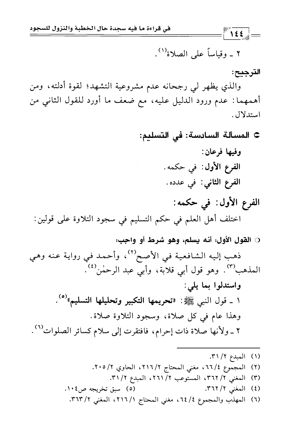 (¬6) المهذب والمجموع (4/ 64) مغني المحتاج (1/ 216) المغني (2/ 363).