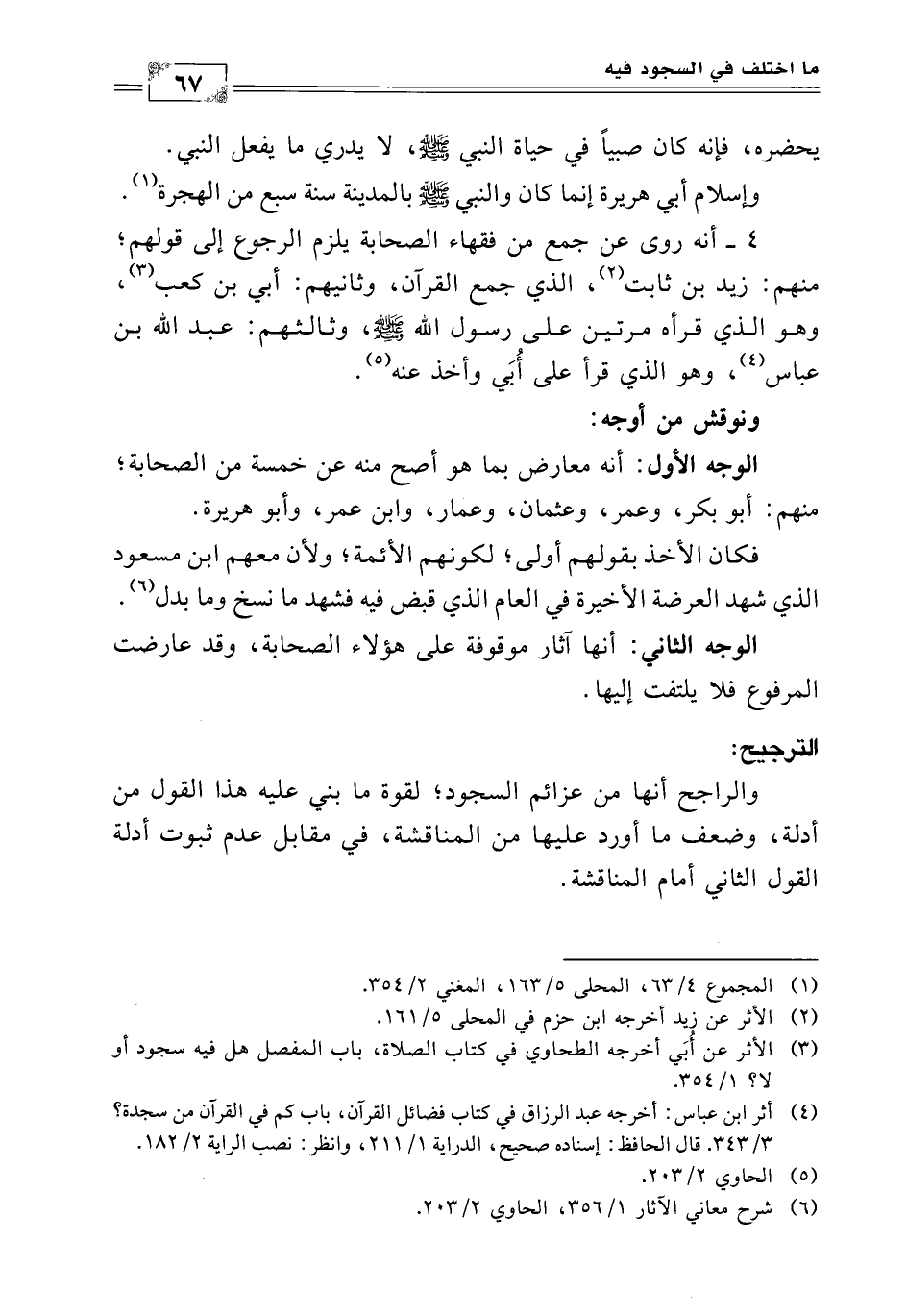 (¬4) أثر ابن عباس: أخرجه عبد الرزاق في كتاب فضائل القرآن، باب كم في القرآن من سجدة؟ (3/ 343) قال الحافظ: إسناده صحيح الدراية (1/ 211) وانظر: نصب الراية (2/ 182).