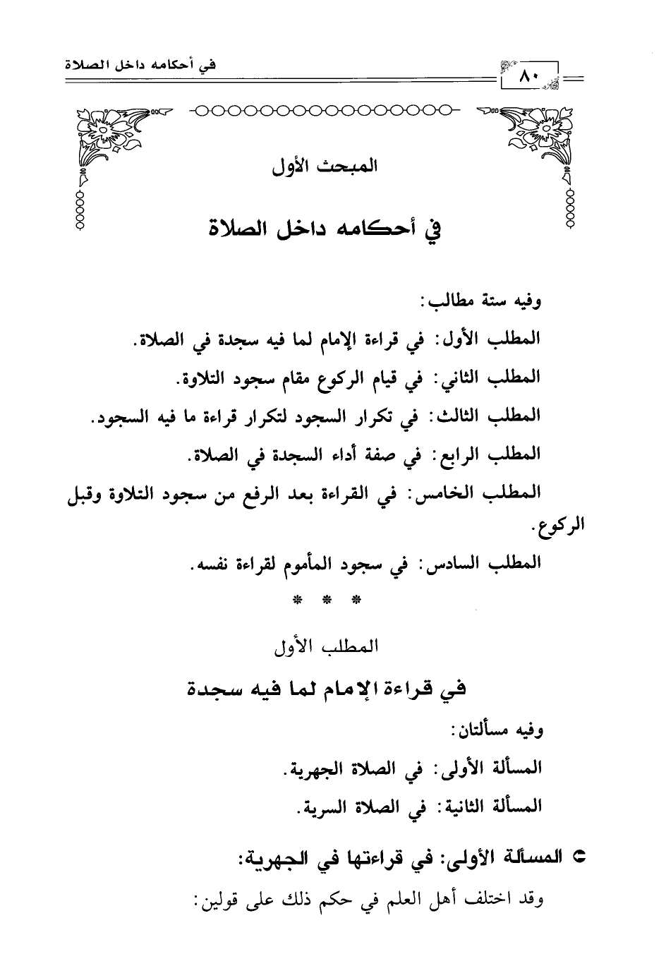 المسألة الأولى: في الصلاة الجهرية.