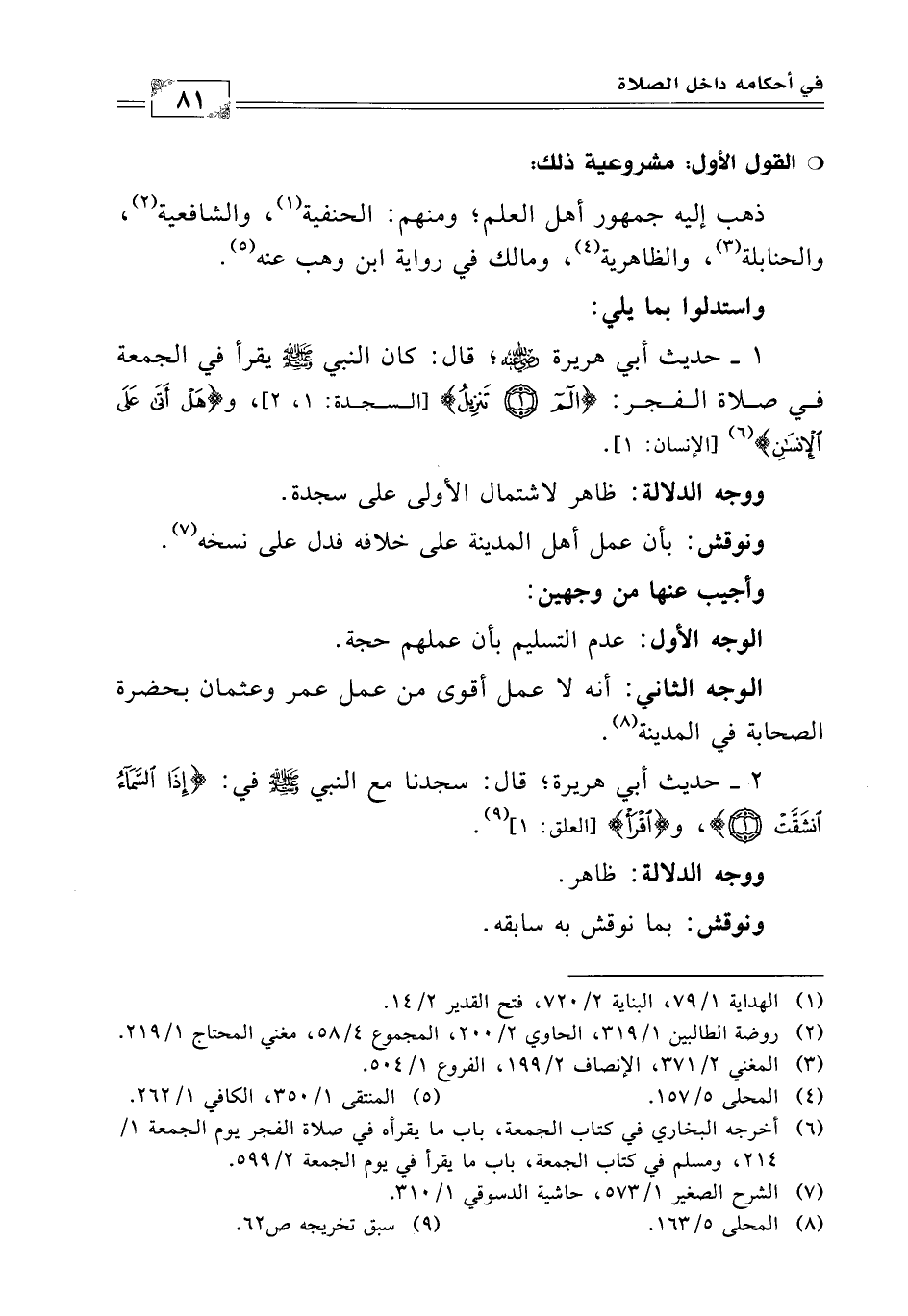 (¬6) أخرجه البخاري في كتاب الجمعة، باب ما يقرأه في صلاة الفجر يوم الجمعة (1/ 214) ومسلم في كتاب الجمعة، باب ما يقرأ في يوم الجمعة (2/ 599).