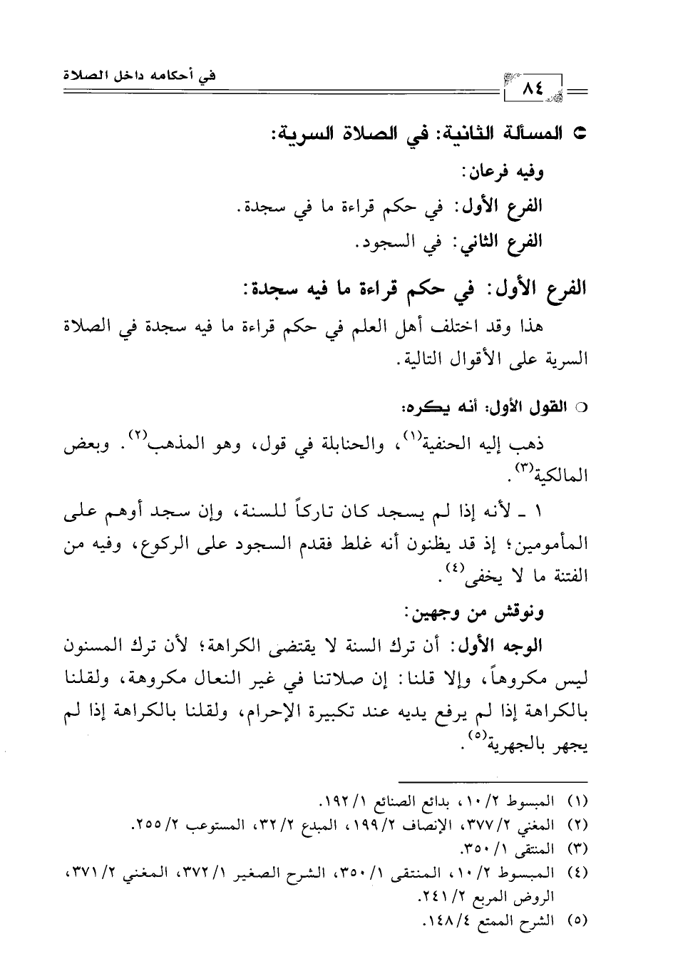 (¬2) المغني (2/ 377) الإنصاف (2/ 199) المبدع (2/ 32) المستوعب (2/ 255).