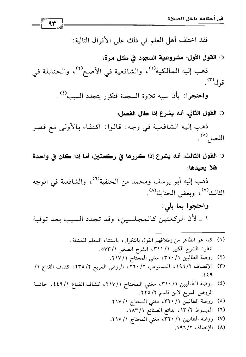 واحتجوا: بأن سببه تلاوة السجدة فتكرر بتجدد السبب (¬4).