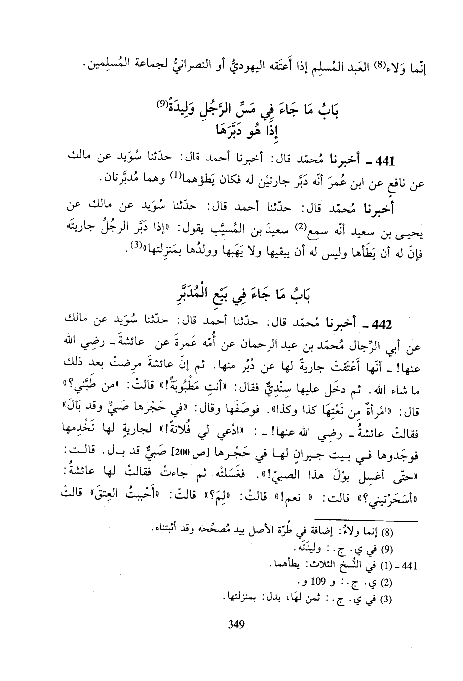 441- أخبرنا محمد قال: أخبرنا أحمد قال: حدثنا سويد عن مالك عن نافعٍ عن ابن عمر أنه دبر جارتين له فكان يطؤهما وهما مدبرتان.