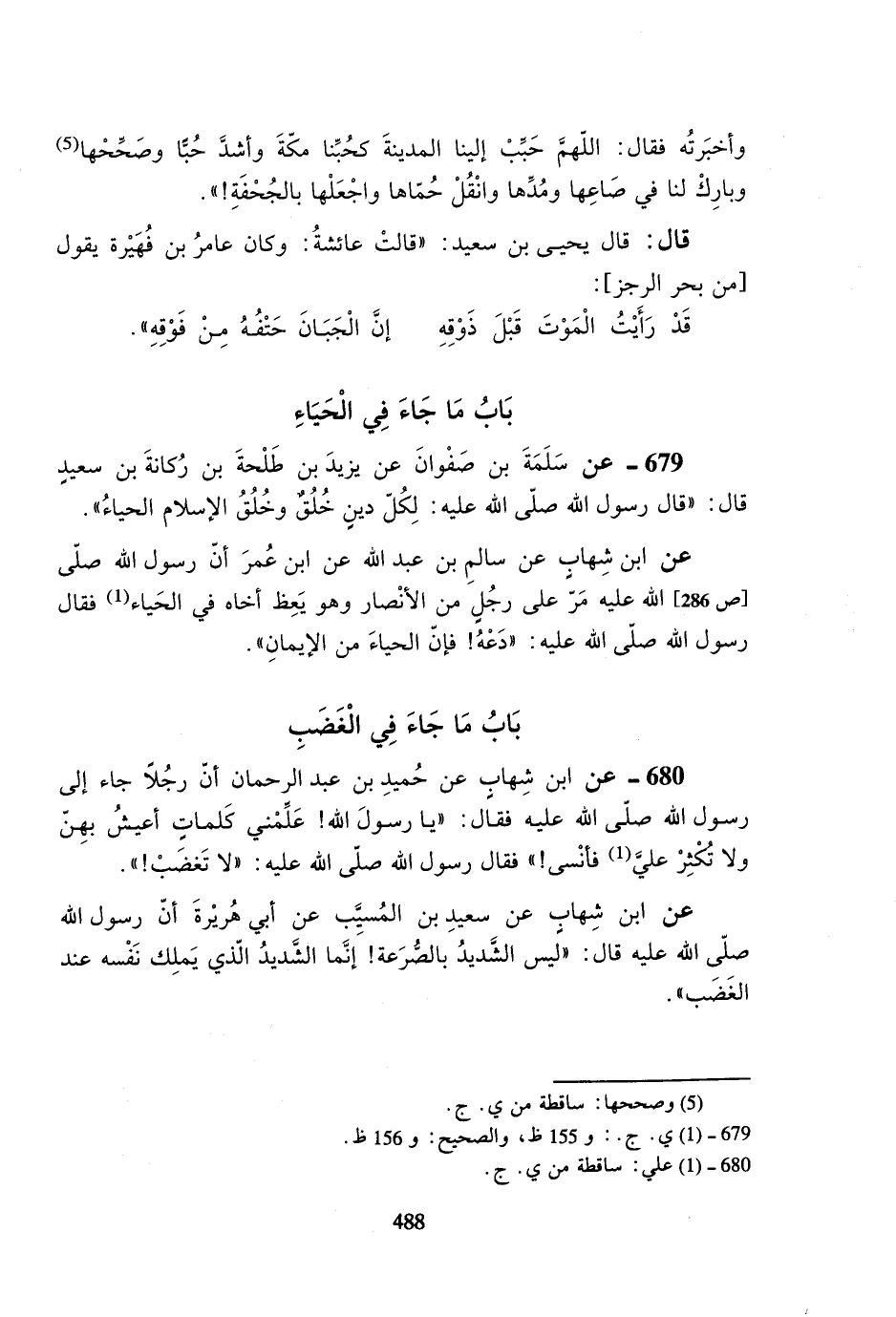 680- عن ابن شهابٍ عن حميد بن عبد الرحمان أن رجلاً جاء إلى رسول الله صلى الله عليه فقال: ((يا رسول الله! علمني كلماتٍ أعيش بهن ولا تكثر علي فأنسى!)) فقال رسول الله صلى الله عليه: ((لا تغضب!)).
