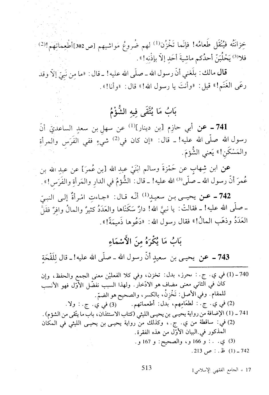 743- عن يحيى بن سعيد أن رسول الله -صلى الله عليه!- قال للقحةٍ #514# تحلب: ((من يحلب هذه؟)) فقام رجلٌ فقال له النبي -صلى الله عليه!-: ((ما اسمك؟)) فقال: ((حربٌ!)) فقال له النبي -صلى الله عليه!-: ((اجلس!)) ثم قال: ((من يحلب هذه؟)) فقام رجلٌ فقال له النبي -صلى الله عليه!-: ((ما اسمك؟)) فقال: ((يعيش [بن طخفة الغفاري]!)) فقال له النبي -عليه السلام!-: ((احلب)) فحلب.