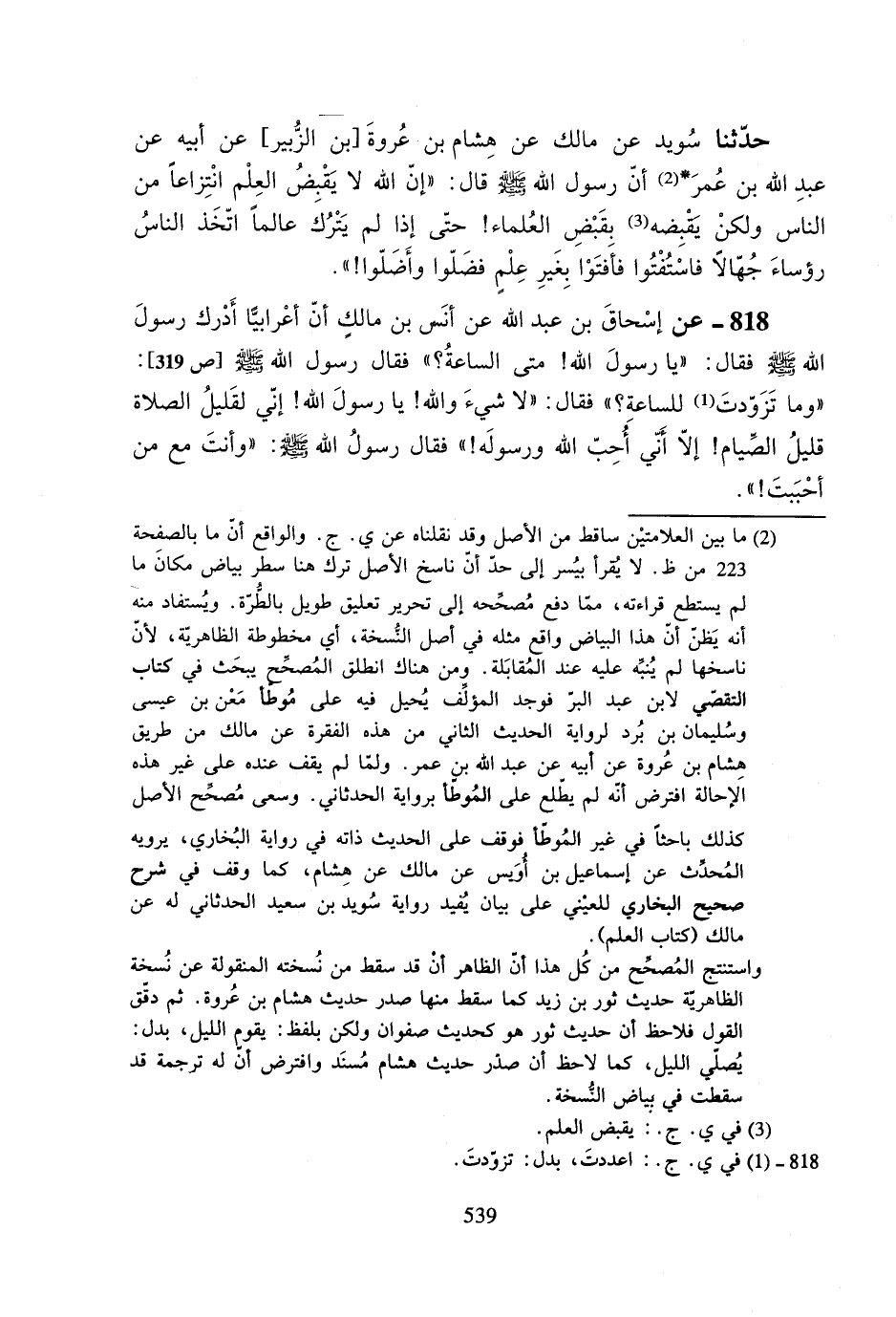 819- تم كتاب الموطأ عن سويد بن سعيد عن مالك.