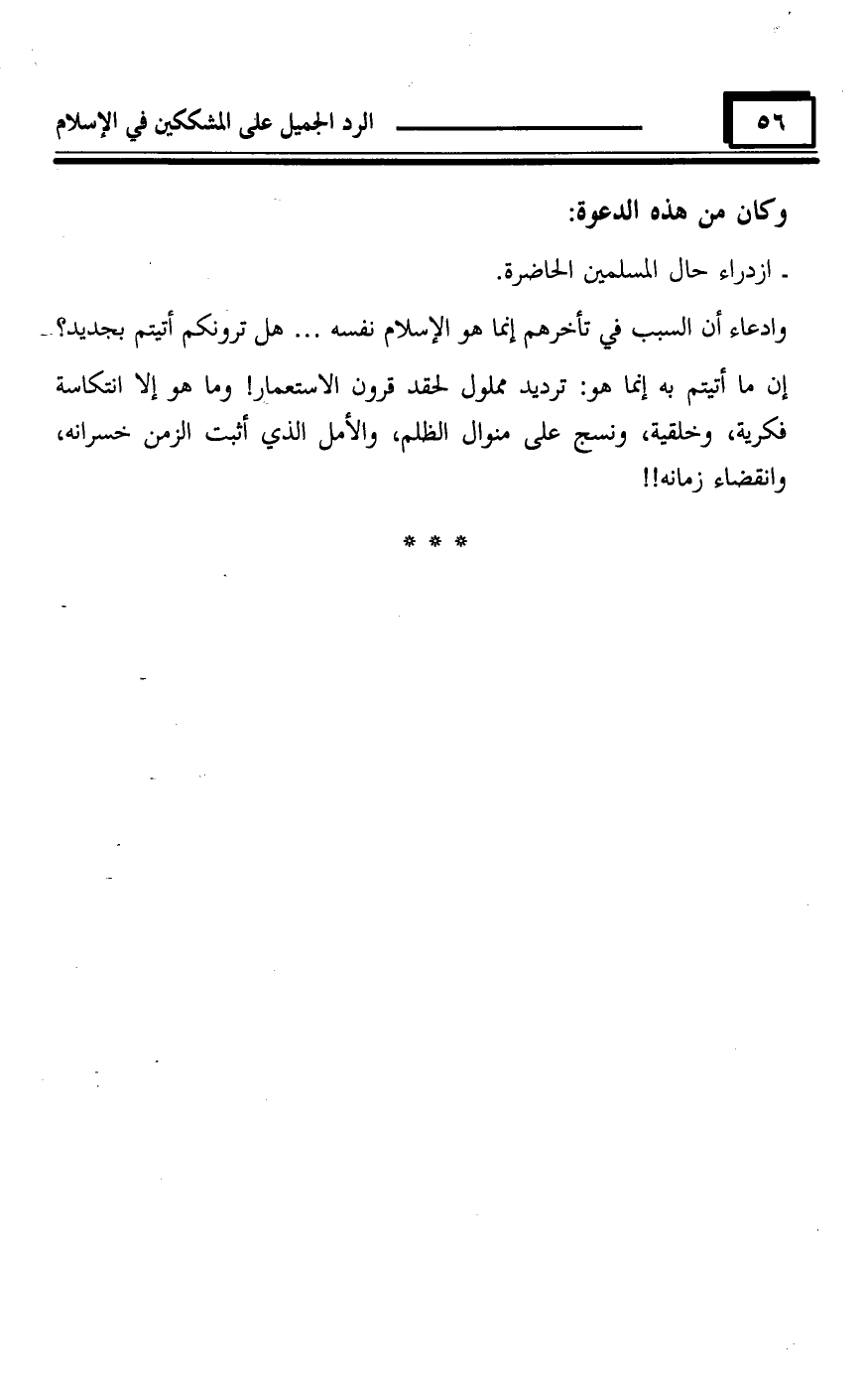 إن ما أتيتم به إنما هو: ترديد مملول لحقد قرون الاستعمار!
