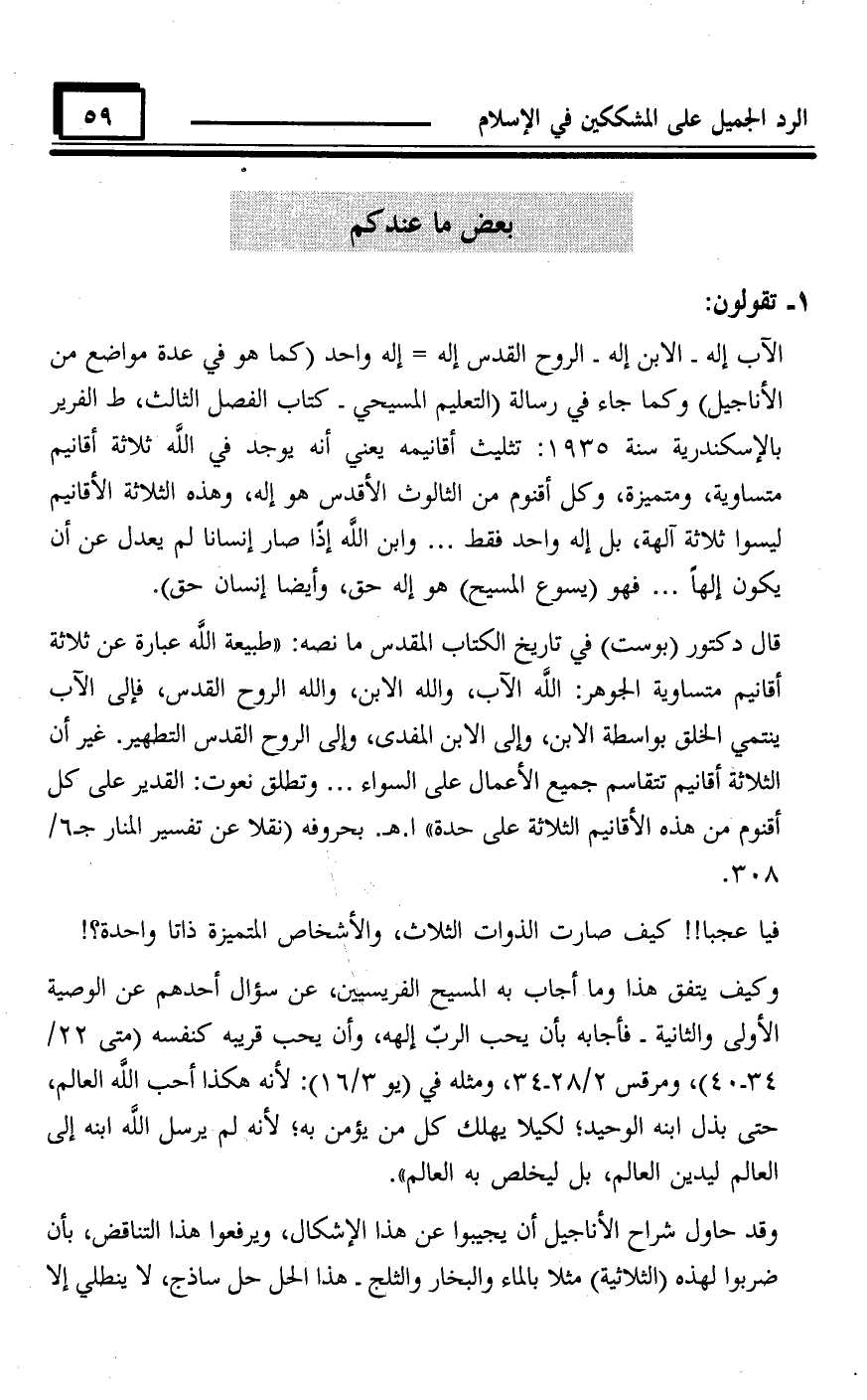 كتاب الرد الجميل على المشككين في الإسلام من القرآن والتوراة والإنجيل والعلم