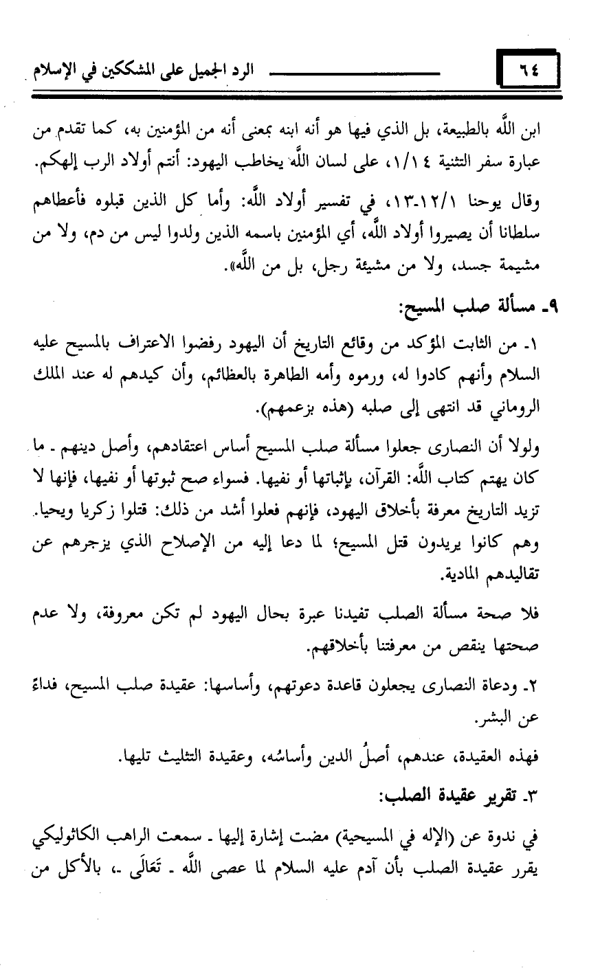 كتاب الرد الجميل على المشككين في الإسلام من القرآن والتوراة والإنجيل والعلم