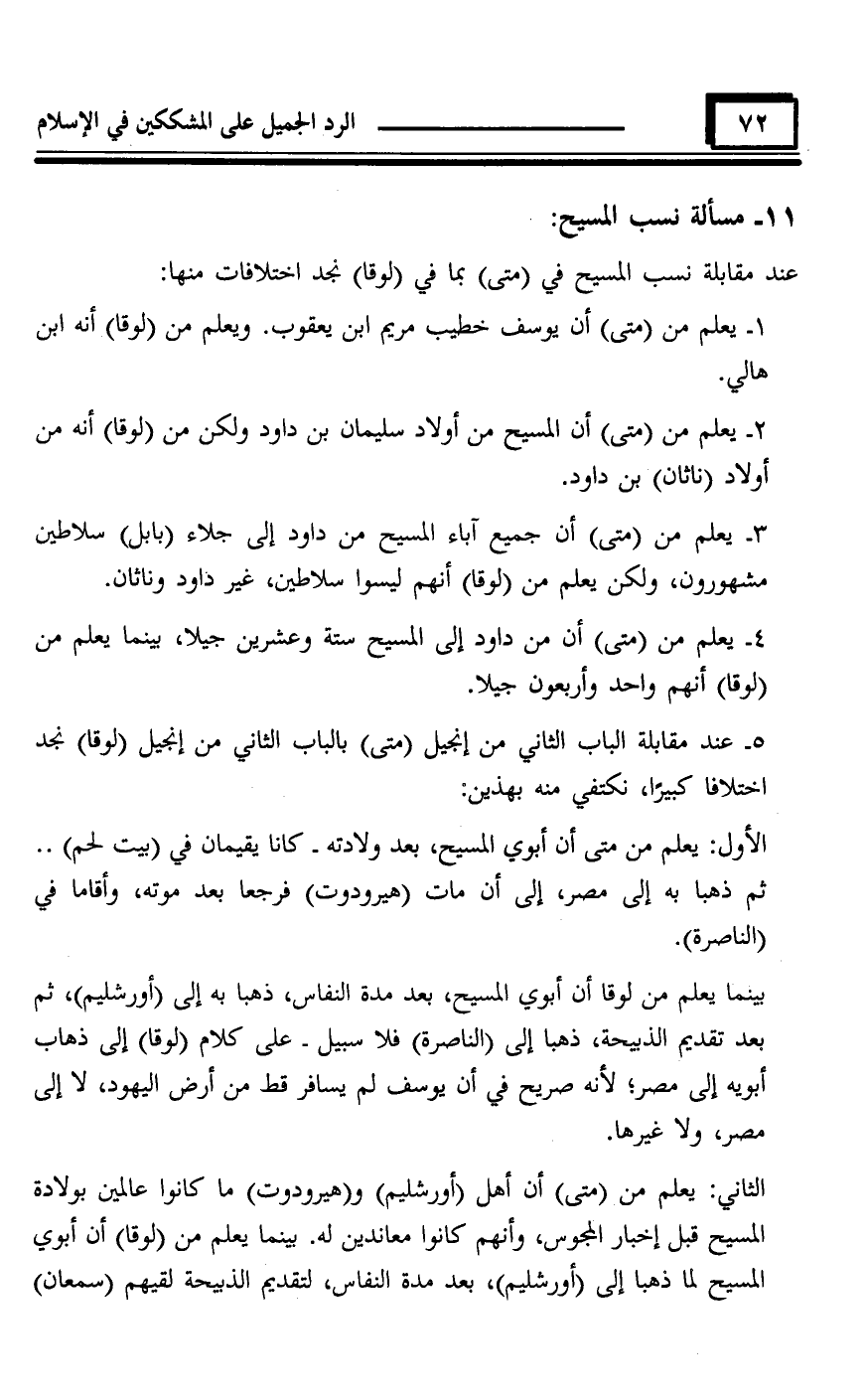 5 - عند مقابلة الباب الثاني من إنجيل (متى) بالباب الثاني من إنجيل (لوقا) نجد
