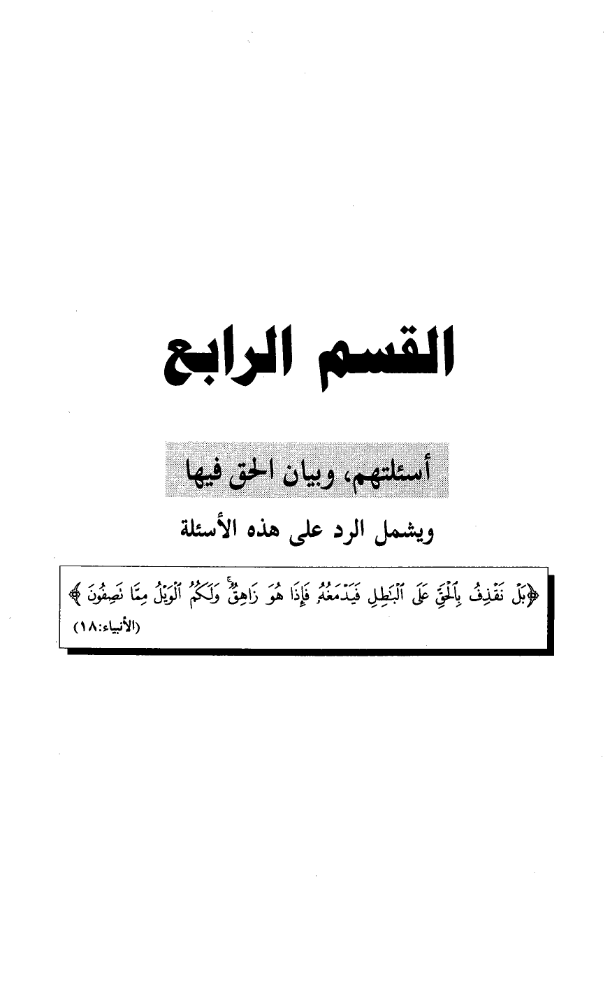 (بَلْ نَقْذِفُ بِالْحَقِّ عَلَى الْبَاطِلِ فَيَدْمَغُهُ فَإِذَا هُوَ زَاهِقٌ وَلَكُمُ الْوَيْلُ مِمَّا تَصِفُونَ (18) .