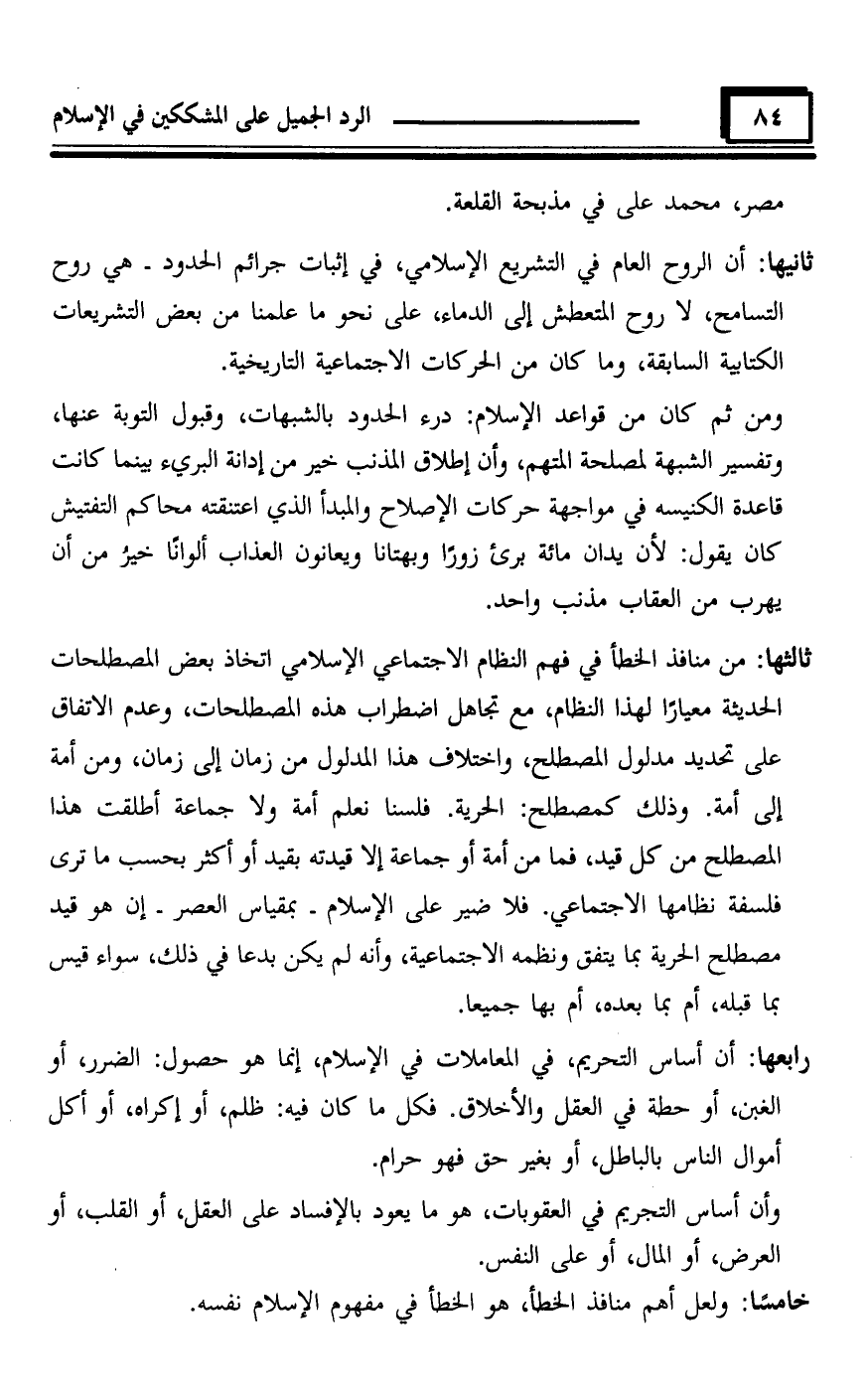 خامسًا: ولعل أهم منافذ الخطأ، هو الخطأ في مفهوم الإسلام نفسه.