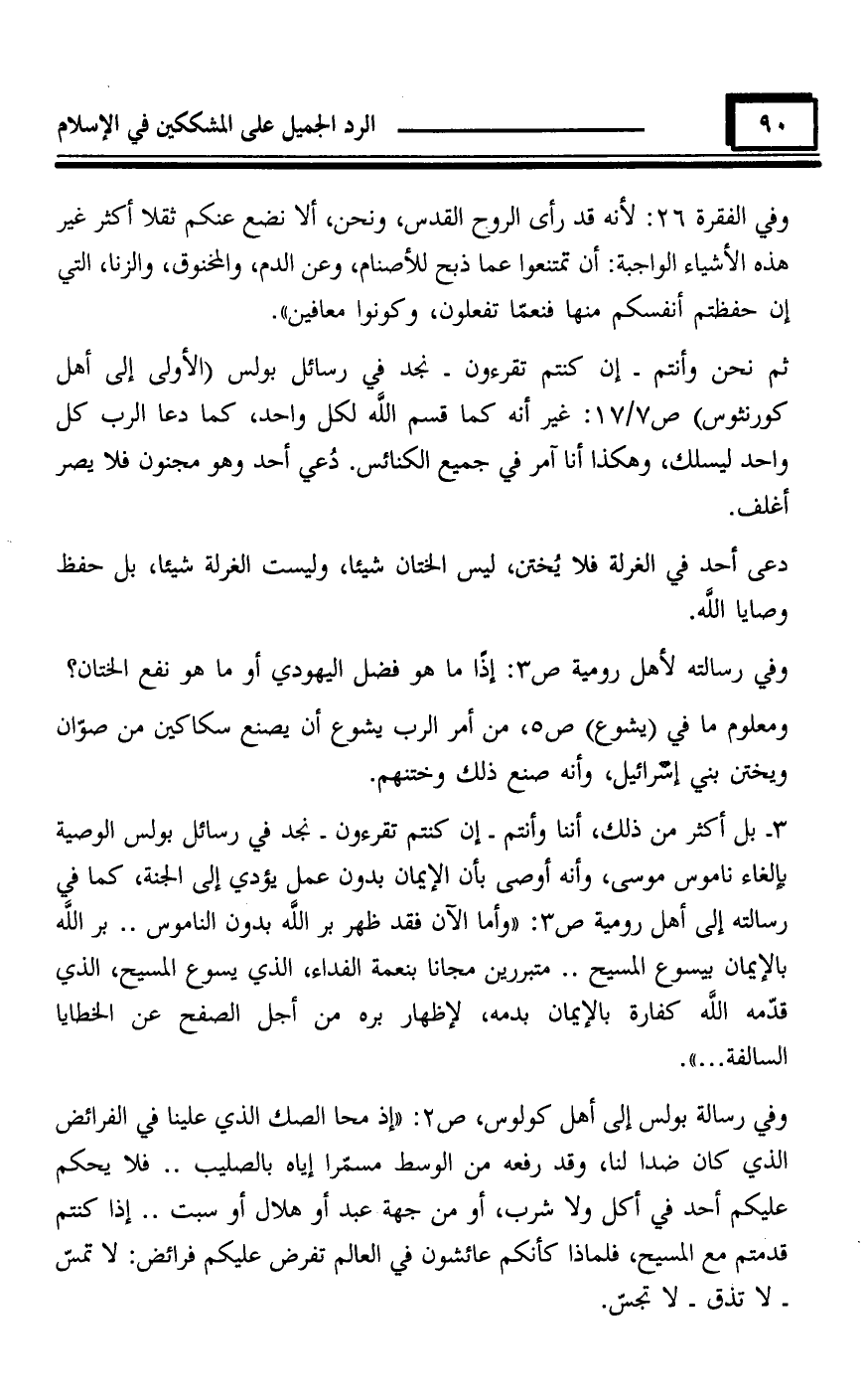 وفي رسالته لأهل رومية ص 3: إذاً ما هو فضل اليهودي أو ما هو نفع الختان؟