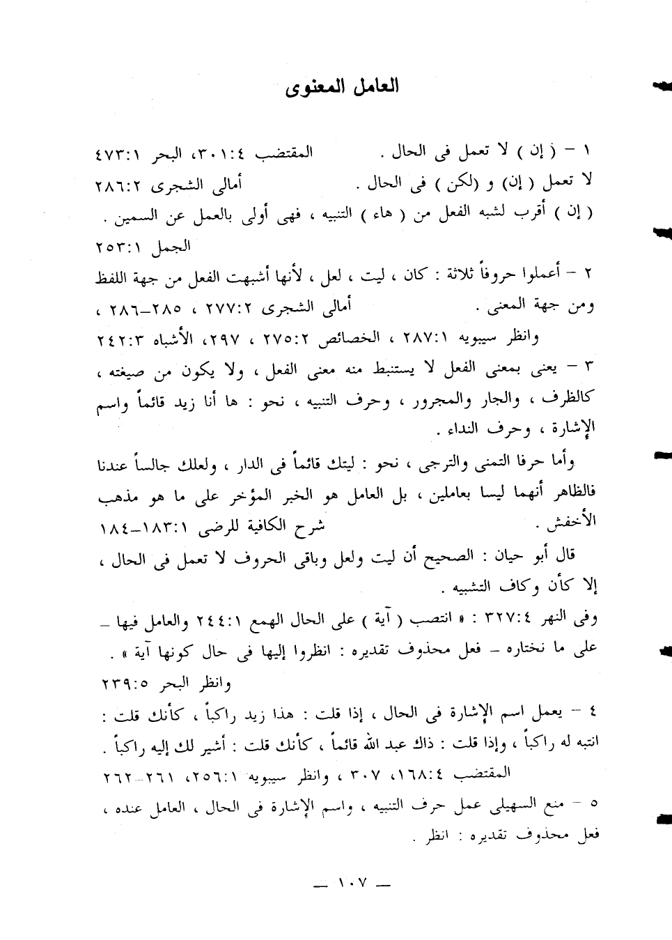 1 - (إن) لا تعمل في الحال. المقتضب 301:4، البحر 473:1 لا تعمل (إن) و (لكن) في الحال. أمالي الشجري 286:2 (إن) أقرب لشبه الفعل من (هاء) التنبيه، فهي أولى بالعمل عن السمين. الجمل 253:1