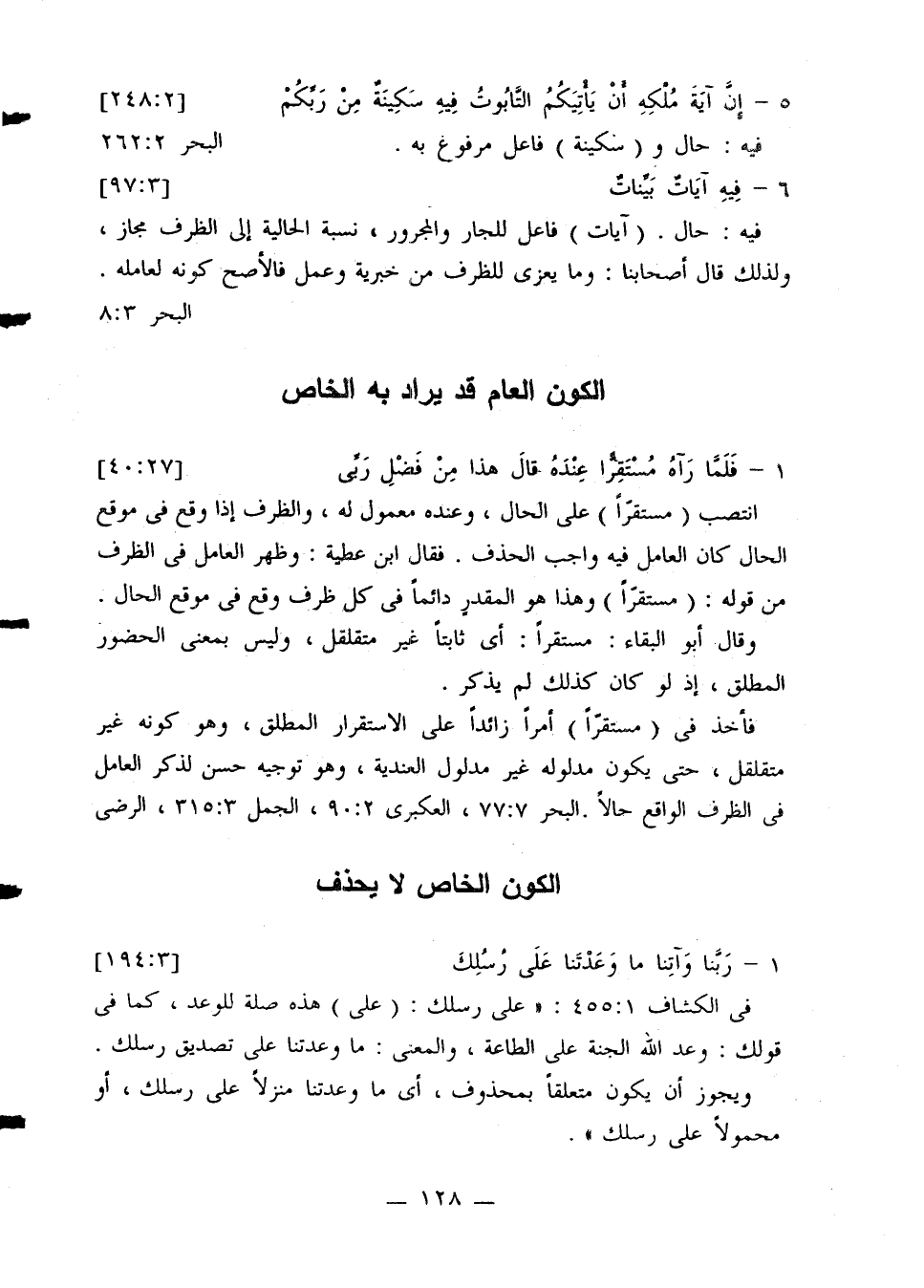 فأخذ في (مستقرًا) أمرًا زائدًا على الاستقرار المطلق، وهو كونه غير متقلقل، حتى يكون مدلوله غير مدلول العندية، وهو توجيه حسن لذكر العامل في الظرف الواقع حالاً. البحر 77:7، العكبري 90:2، الجمل 315:3، الرضي