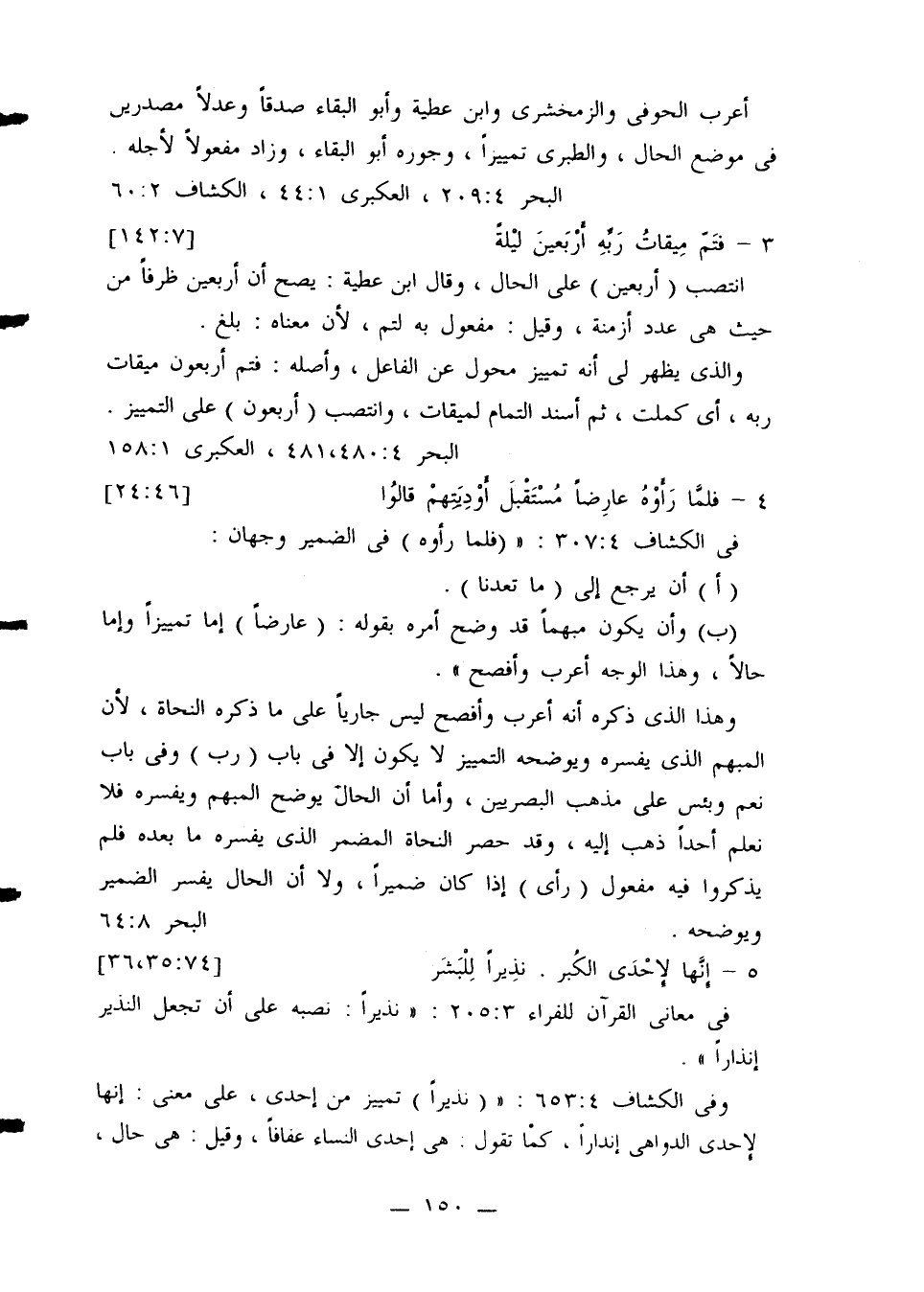 (ب) وأن يكون مبهمًا قد وضح أمره بقوله (عارضًا) إما تمييزًا وإما حالاً، وهذا الوجه أعرب وأفصح».