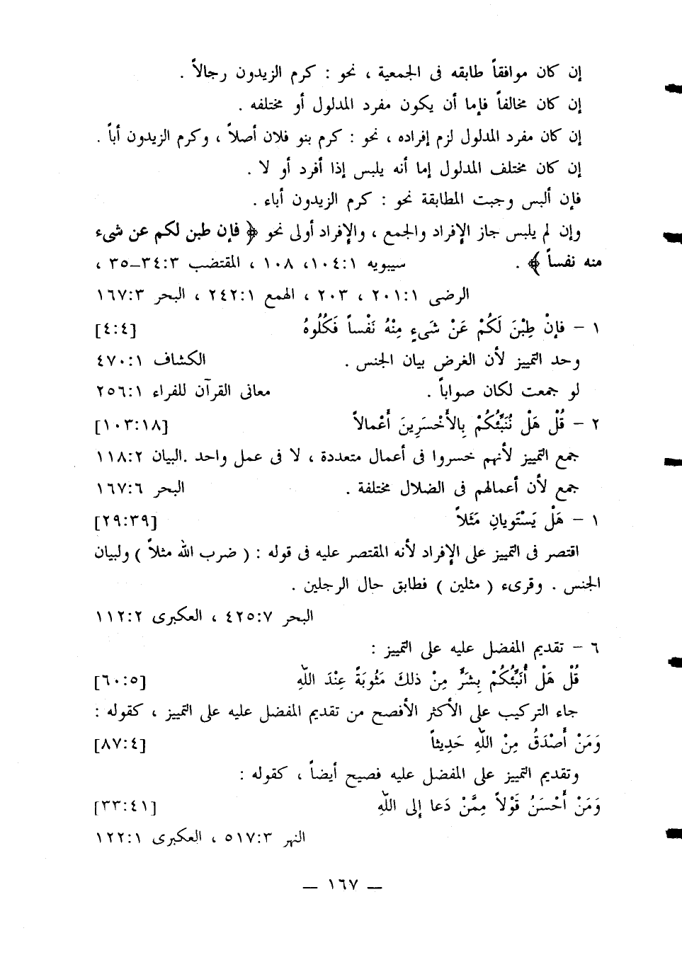 وإن لم يلبس جاز الإفراد والجمع، والإفراد أولى نحو {فإن طبن لكم عن شيء منه نفساً}. سيبويه 104:1، 108، المقتضب 34:3 - 35، الرضي 201:1، 203، الهمع 242:1، البحر 167:3