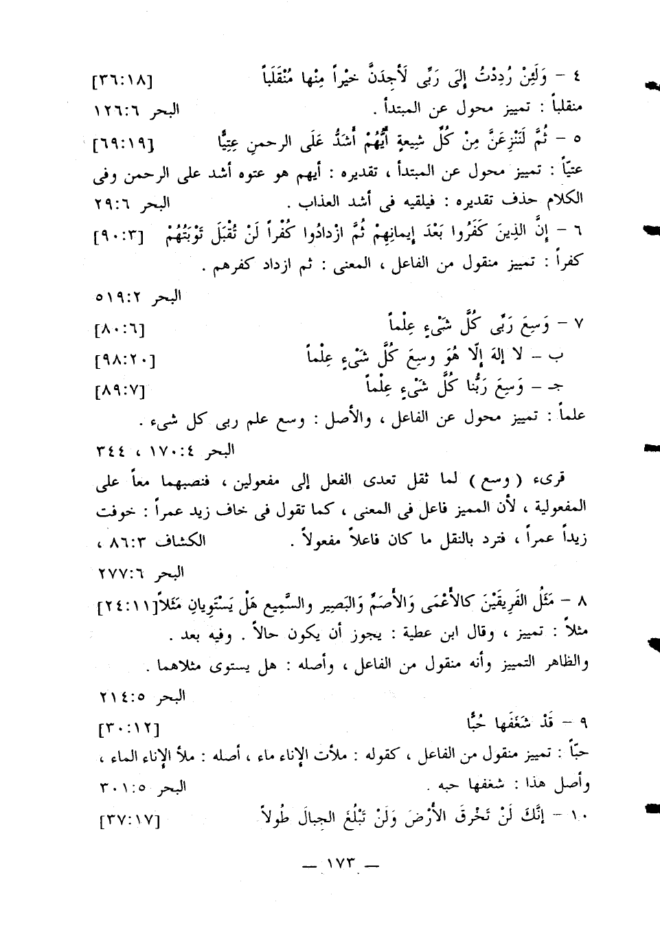 قرئ (وسع) لما ثقل تعدي الفعل إلي مفعولين، فنصبهما معا علي المفعولية، لأن المميز فاعل في المعني، كما تقول في خاف زيد عمرا: خوفت زيدا عمرا، فترد بالنقل ما كان فاعلا مفعولا. الكشاف 86:3، البحر 277:6
