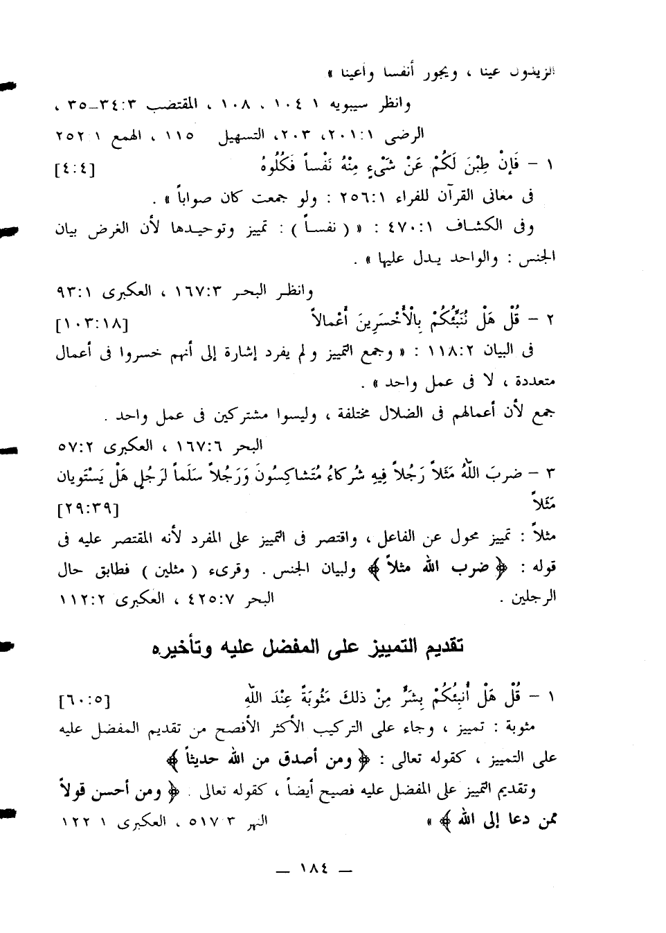 في البيان 118:2: «وجمع التمييز ولم يفرد إشارة إلى أنهم خسروا في أعمال متعددة، لا في عمل واحد».