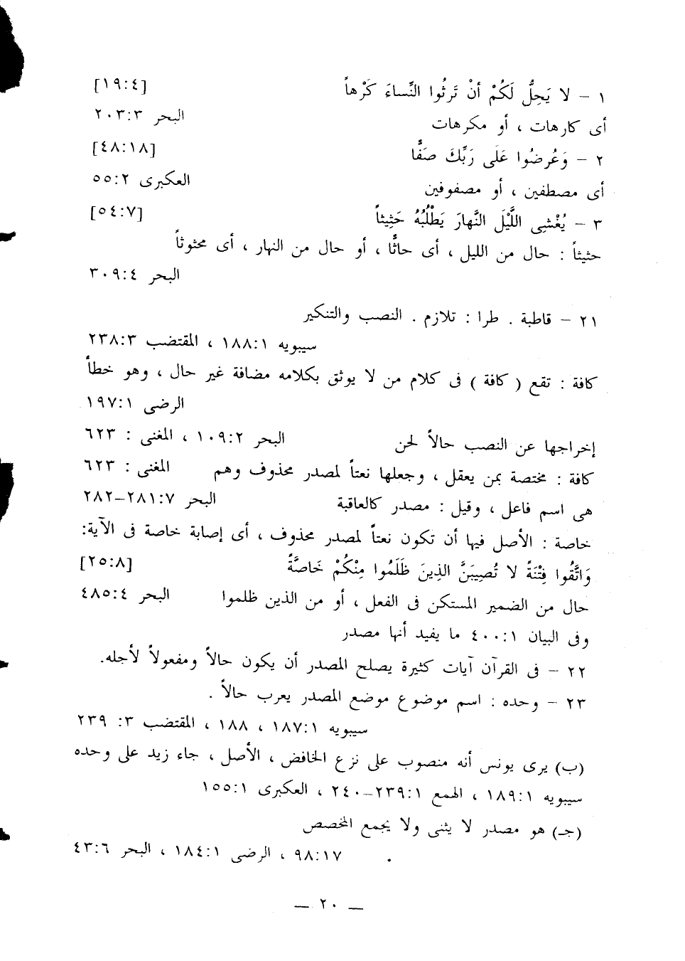 22 - في القرآن آيات كثيرة يصلح المصدر أن يكون حالاً ومفعولاً لأجله.