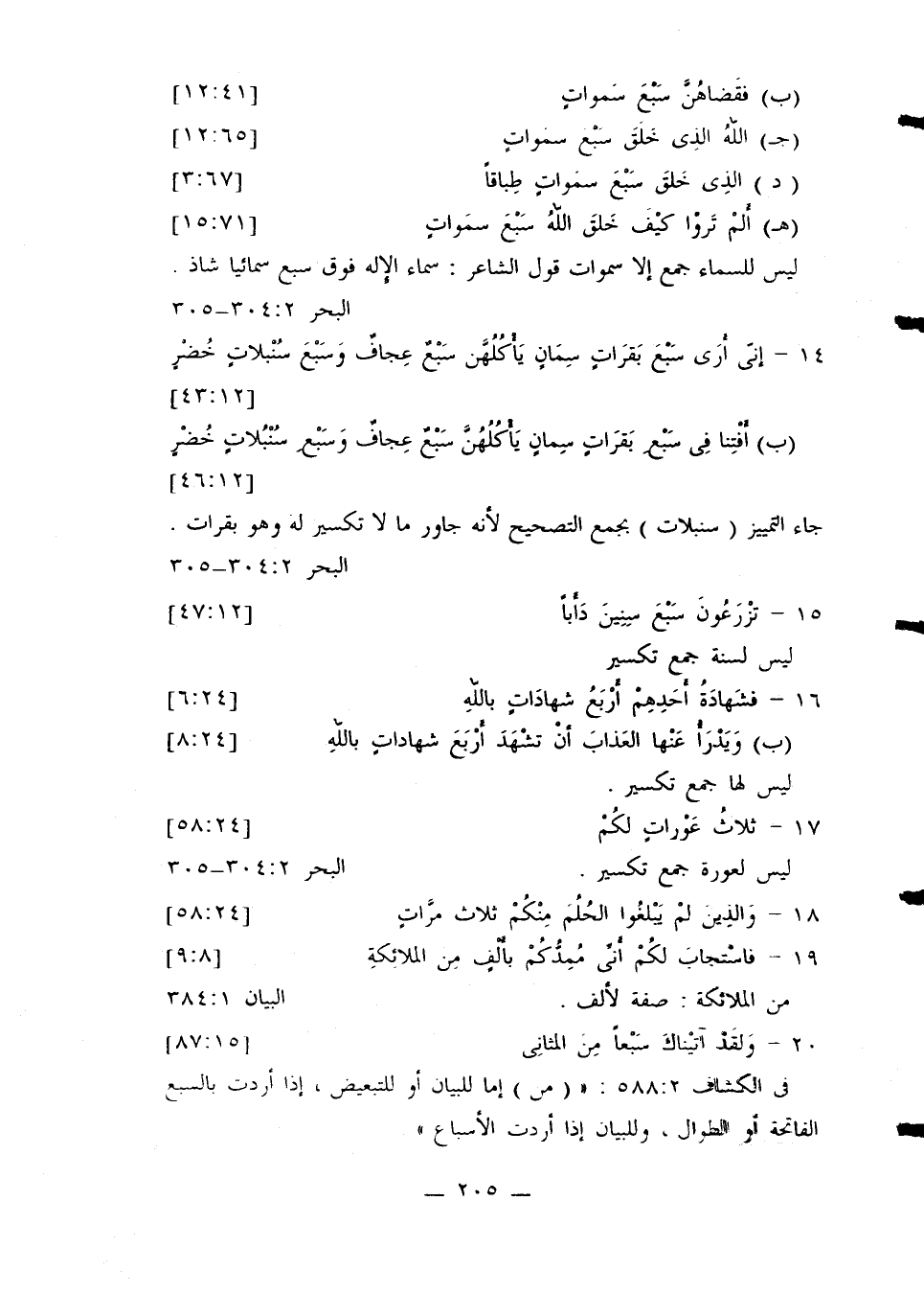 جاء التمييز (سنبلات) بجمع التصحيح لأنه جاور ما لا تكسير له وهو بقرات البحر 304:2 - 305
