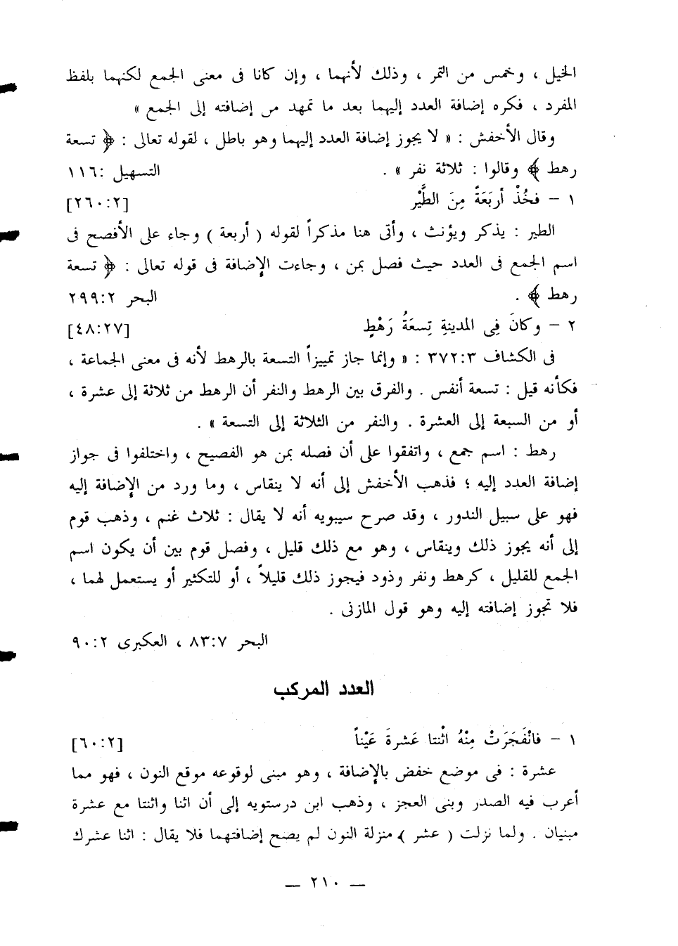 وقال الأخفش: «لا يجوز إضافة العدد إليهما وهو باطل، لقوله تعالى: {تسعة رهط} وقالوا: ثلاثة نقر». التسهيل: 116