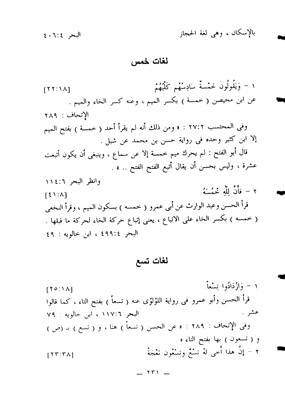 وفي المحتسب 27:2: «ومن ذلك أنه لم يقرأ أحد (خمسة) بفتح الميم إلا ابن كثير وحده في رواية حسن بن محمد عن شبل.