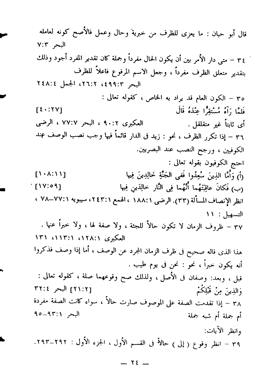 38 - إذا تقدمت الصفة على الموصوف صارت حالاً، سواء كانت الصفة مفردة أم جملة أم شبة جملة البحر 1: 93 - 95