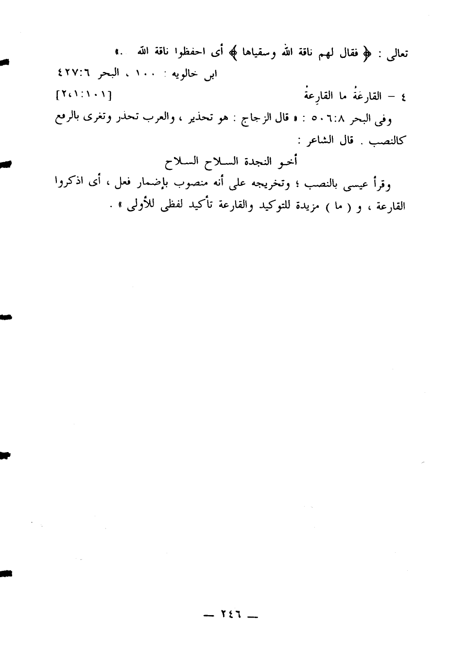 تعالى: {فقال لهم ناقة الله وسقياها} أي احفظوا ناقة الله ...». ابن خالويه: 100، البحر 427:6