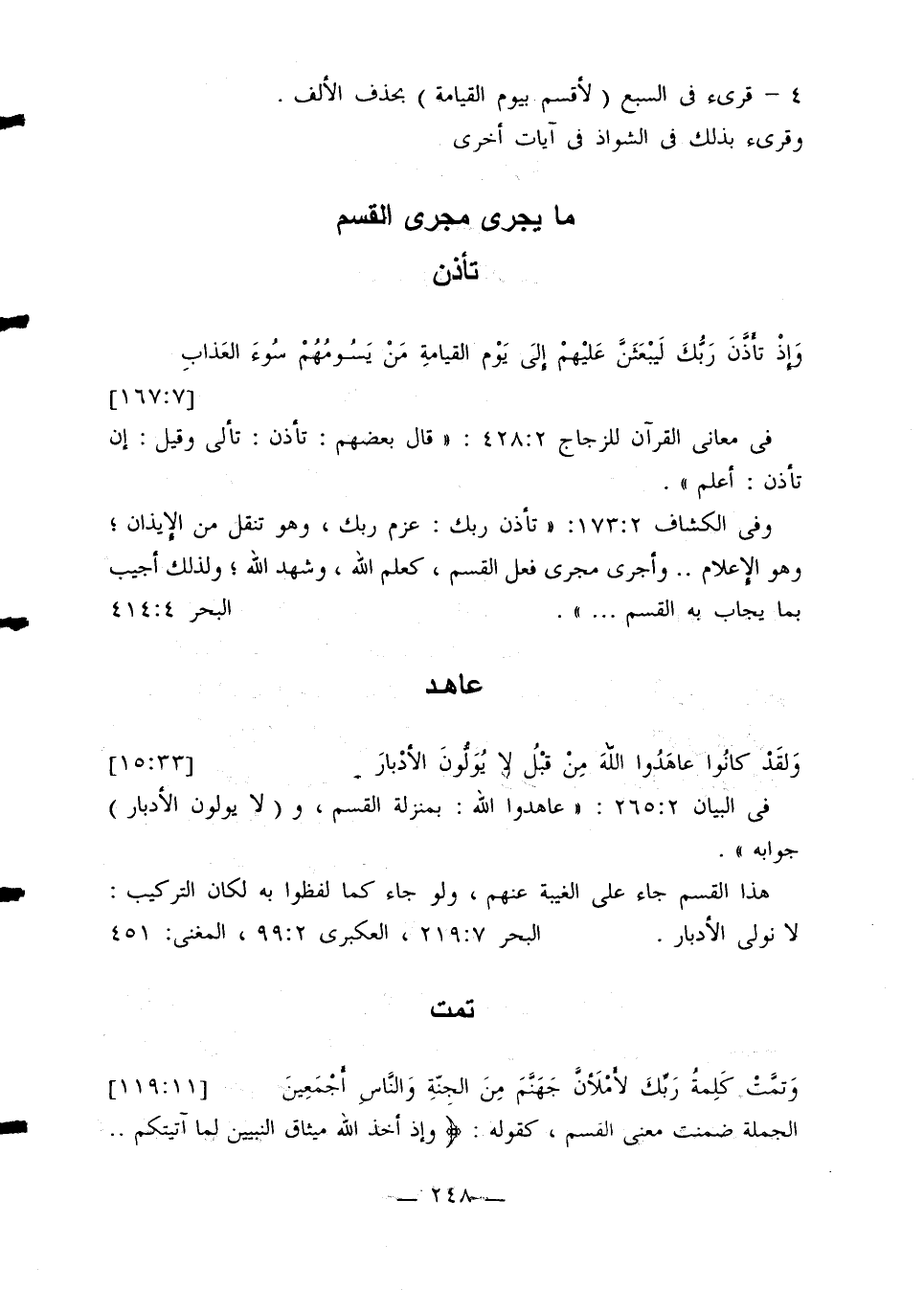 وفي الكشاف 173:2: «تأذن ربك عزم ربك، وهو تنقل من الإيذان؛ وهو الإعلام .. وأجرى مجرى فعل القسم، كعلم الله، وشهد الله؛ ولذلك أجيب بما يجاب به القسم ...». البحر 414:4