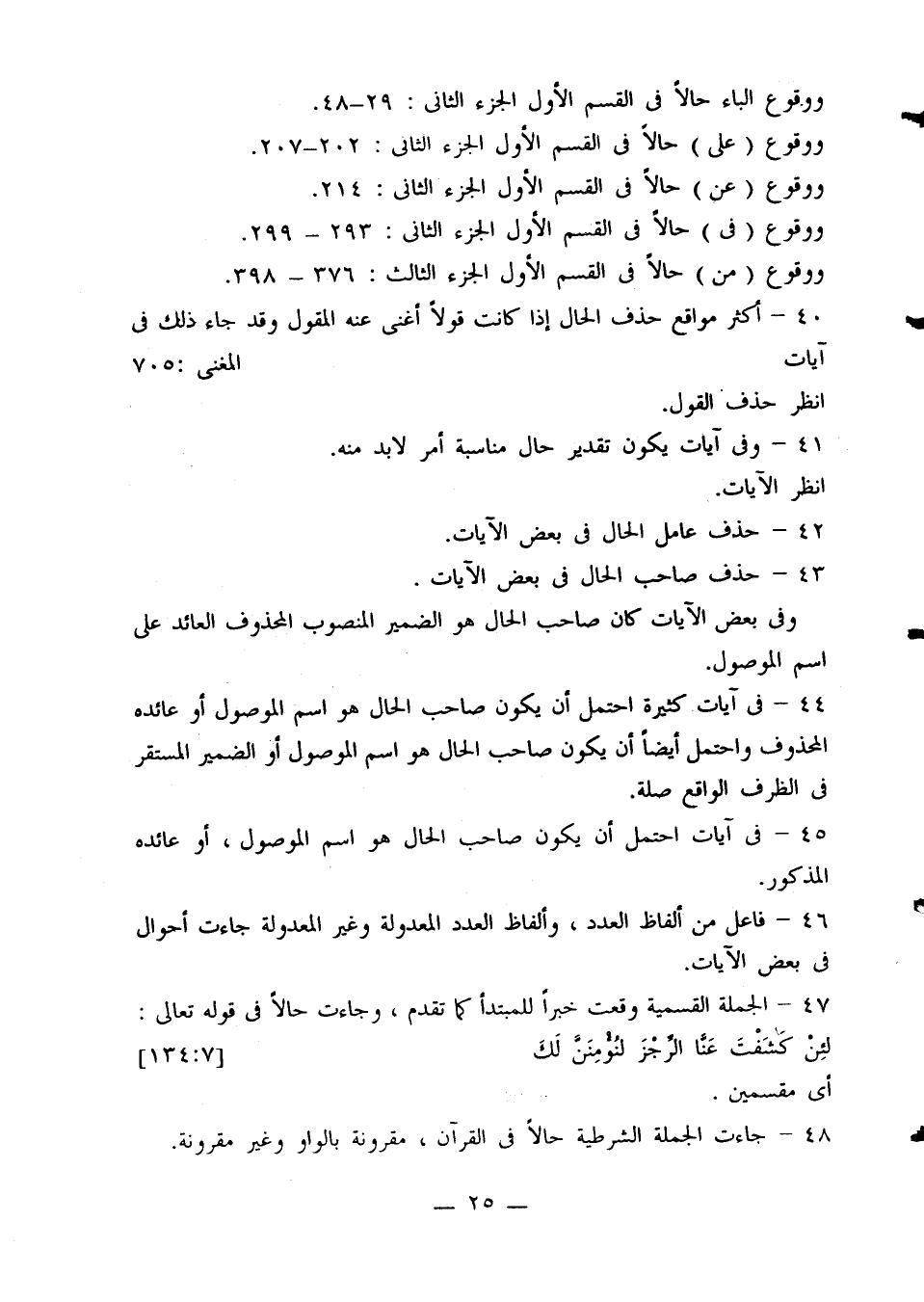40 - أكثر مواقع حذف الحال إذا كانت قولاً أغنى عنه المقول وقد جاء ذلك في آيات المغني: 705