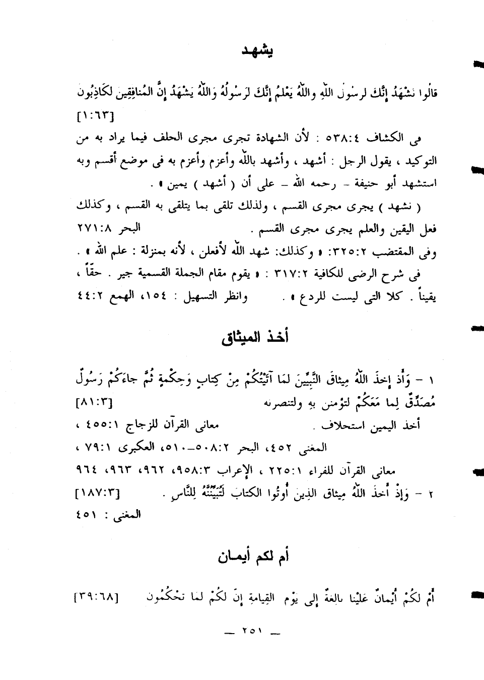 في الكشاف 538:4: لأن الشهادة تجري مجرى الحلف فيما يراد به من التوكيد، يقول الرجل: أشهد، وأشهد بالله وأعزم وأعزم به في موضع أقسم وبه استشهد أبو حنيفة- رحمه الله- على أن (أشهد) يمين».